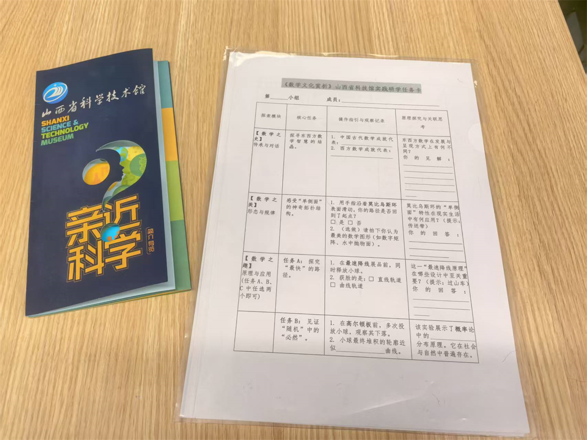 两个学时的研学活动结束时,学生们完成的任务卡上不仅记录了观察结果,更写满了独特的思考与发现。这种将课堂延伸到科技馆的教学方式,让学生们在实践中深化了对数学文化的理解,也激发了探索数学应用的热情。武老师表示:“通过这样的实践研学,我们希望学生能够建立数学与生活的联系,真正欣赏数学文化的价值,从而在未来的学习中主动运用数学思维解决问题。”