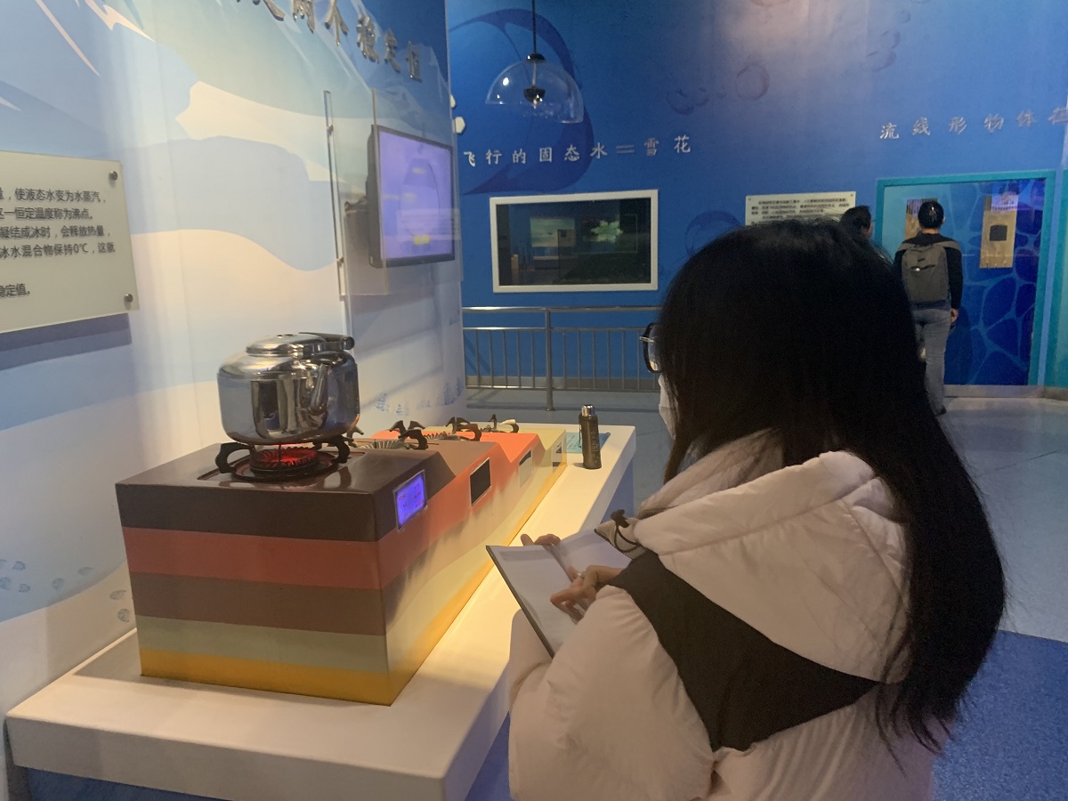 活动伊始,课程教师许永红明确了本次研学的目标与任务,将学生分为三个小组,分别聚焦于“宇宙与生命”“机器与动力”“走向未来”三大物理主题展厅。同学们沿着展厅的叙事脉络,在丰富的模型、互动装置与多媒体展示前驻足观察,从宏观宇宙到微观生命,从传统机械到未来能源,物理学的原理与应用无处不在。在“宇宙与生命”展厅,同学们凝视星图,模拟天体运行;在“机器与动力”展厅,他们操作机械模型,感受能量转换;在“走向未来”展厅,他们探讨碳循环与太空探索的前沿议题。每一件展品都成为理解物理概念、连接理论与现实的生动媒介。