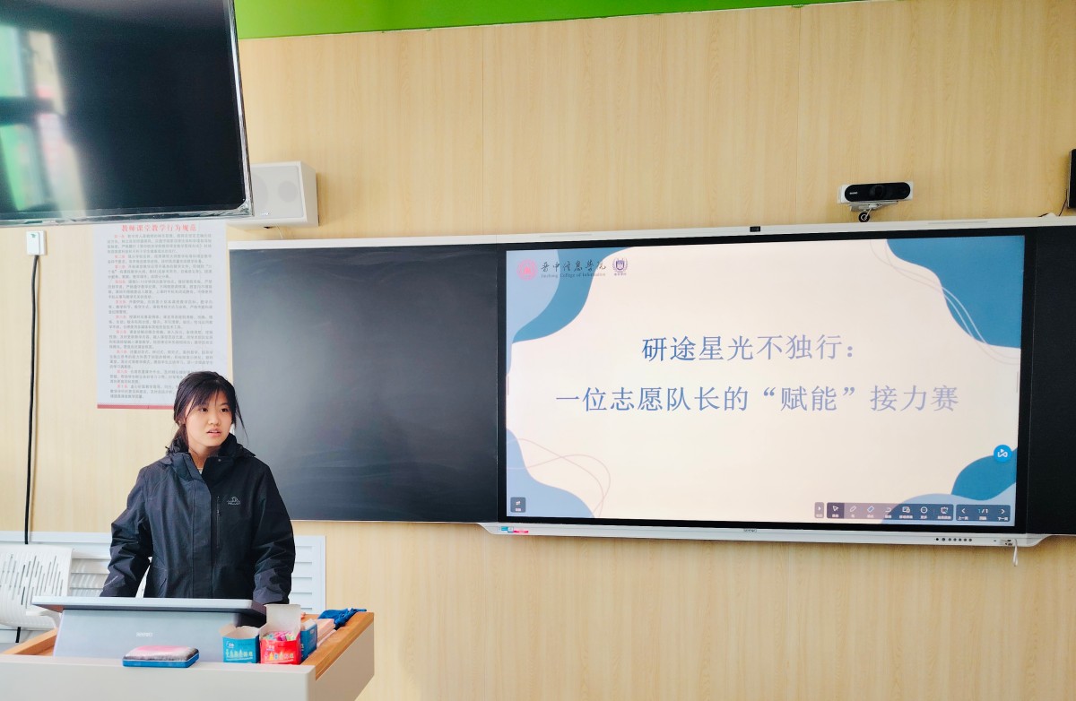 11月14日,一场以“研途星光:从志愿队长到考研榜样的智慧传承”为主题的分享会在晋中信息学院远景学院102温情启幕。2025届优秀校友崔晨以“过来人”的身份,将考研征程中的经验与感悟娓娓道来。不仅是一次备考方法的传授,更是一场关于成长、责任与传承的精神盛宴。