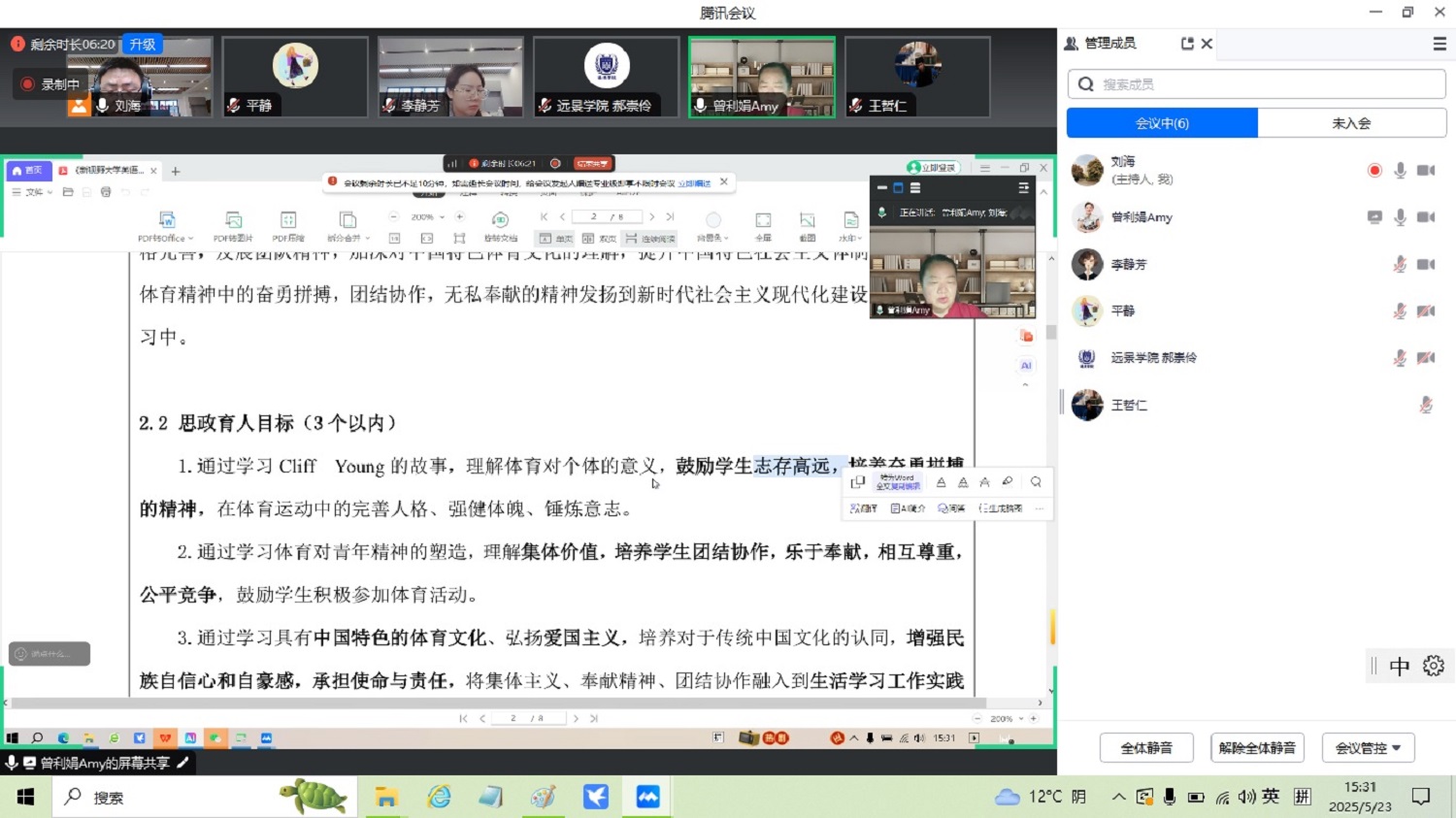 为落实立德树人根本任务,深化课程思政教学改革,提升青年教师课程思政案例撰写能力,5月23日下午,远景学院特邀郑州大学国家级一流课程负责人、青年教师成长导师曾利娟教授开展“课程思政案例撰写方法”专题培训。本次培训通过“案例点评+互动研讨”的形式,为青年教师提供精准指导,助力其教学设计与实践能力提升。