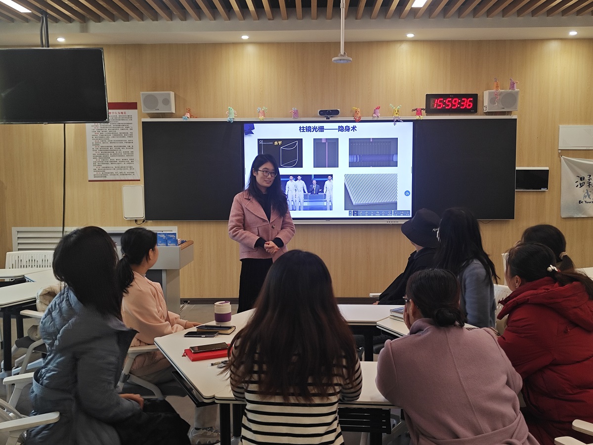 近日,远景学院自然科学与社会科学教研室举办了一场以“柱镜光栅与隐身术:光学结构如何重塑视觉感知”为主题的学术沙龙。本次活动由许永红老师主讲,以日常生活中罕见的“柱镜光栅”这一光学元件为起点,逐步揭示“视觉隐身”背后的科学原理,并引导与会教师展开了一场跨越自然科学与社会科学的思想对话。