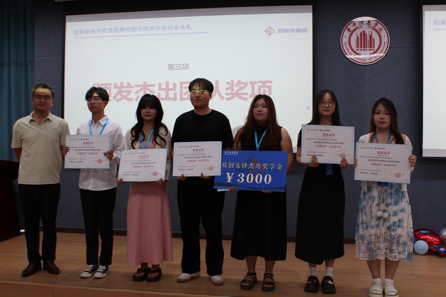 结业典礼上,创新创业学院双创导师杨骁宣读《关于第四期双创先锋班学员结业的通知》。随后各位企业导师为学员颁发结业证书、王处长为杰出团队颁发荣誉证书和奖金。