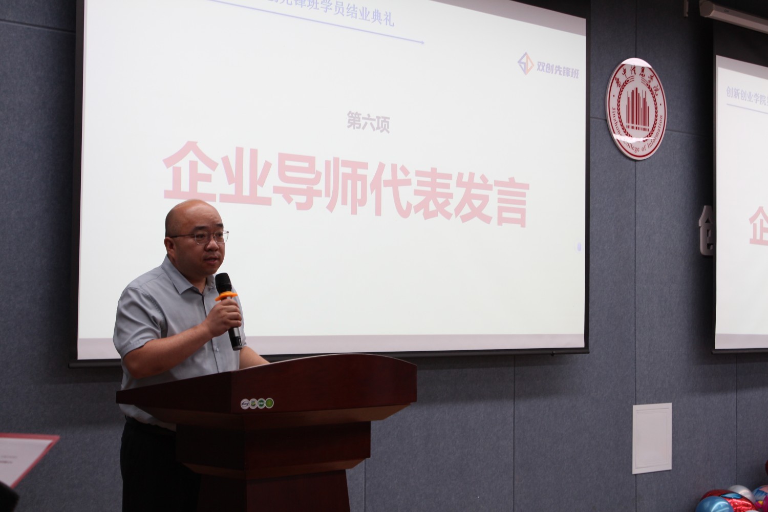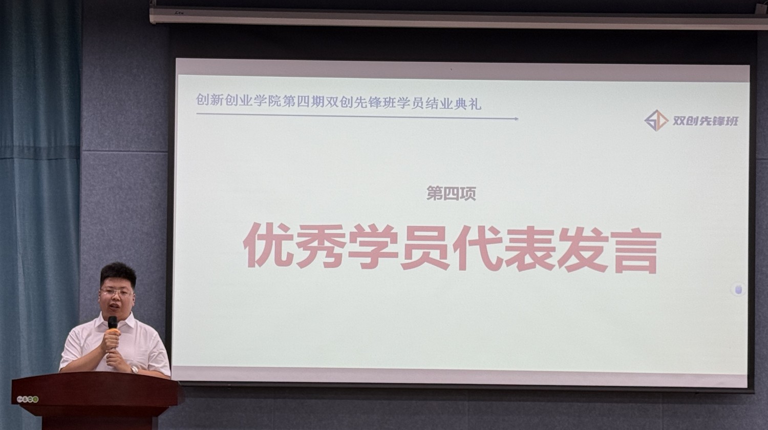 优秀学员代表郭佳承特别感谢学校“双创先锋班”这个平台,提高了创业思维和能力,未来将秉持“先锋”精神,持续学习、创新;项目导师陈利红在发言中,深情回顾了学员们的蜕变历程,他用“未来可期”四个字表达对学员的殷切祝愿。企业导师陈瑞超则以伴手礼为引,感谢学员们的精心准备,并传递了“成长无价”的核心理念,鼓励学员们在创新创业的道路上勇往直前。