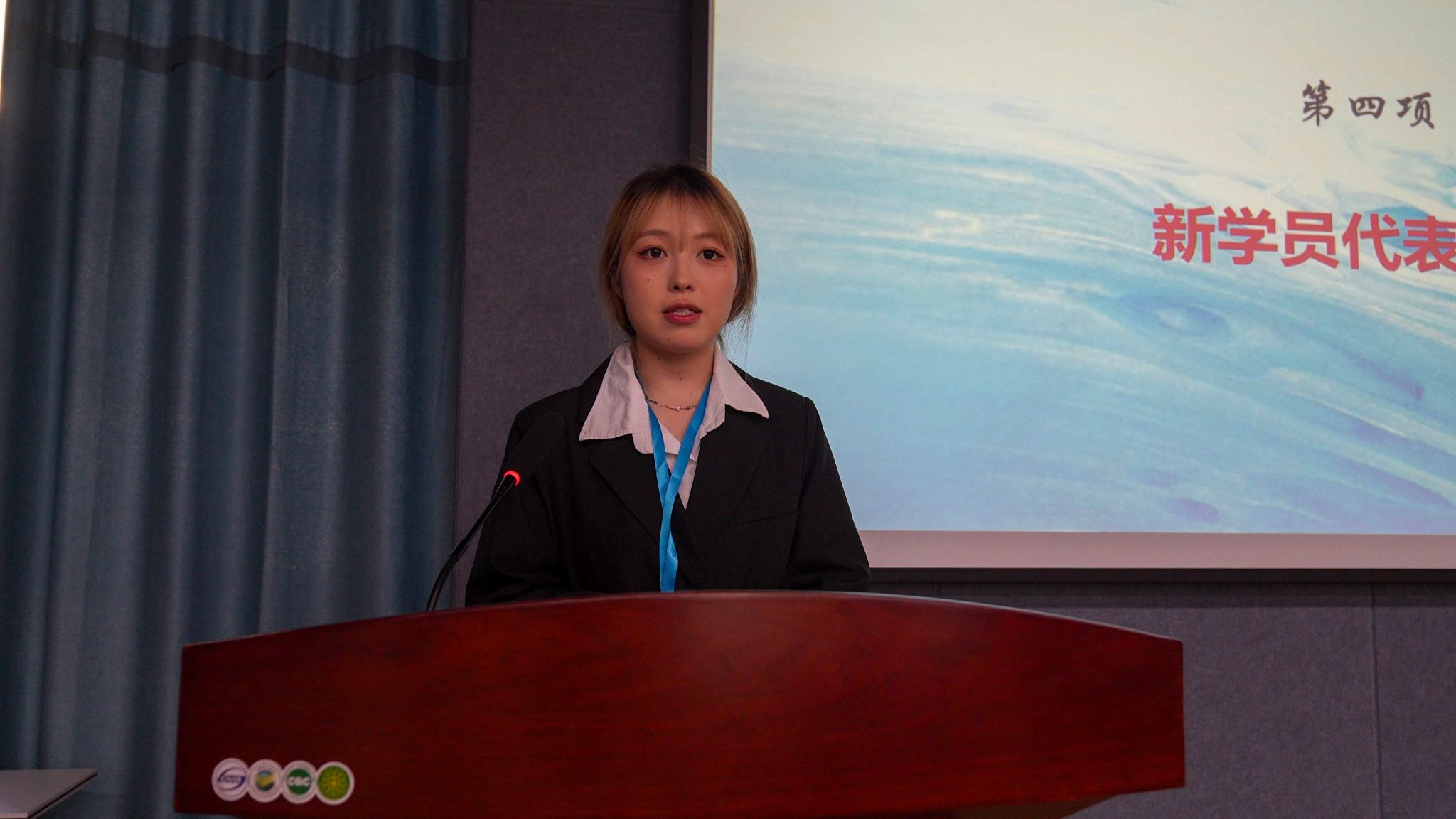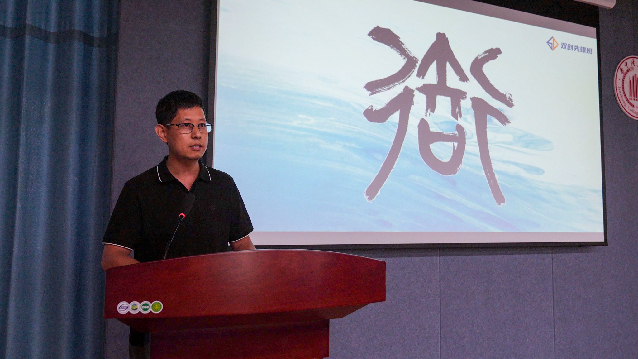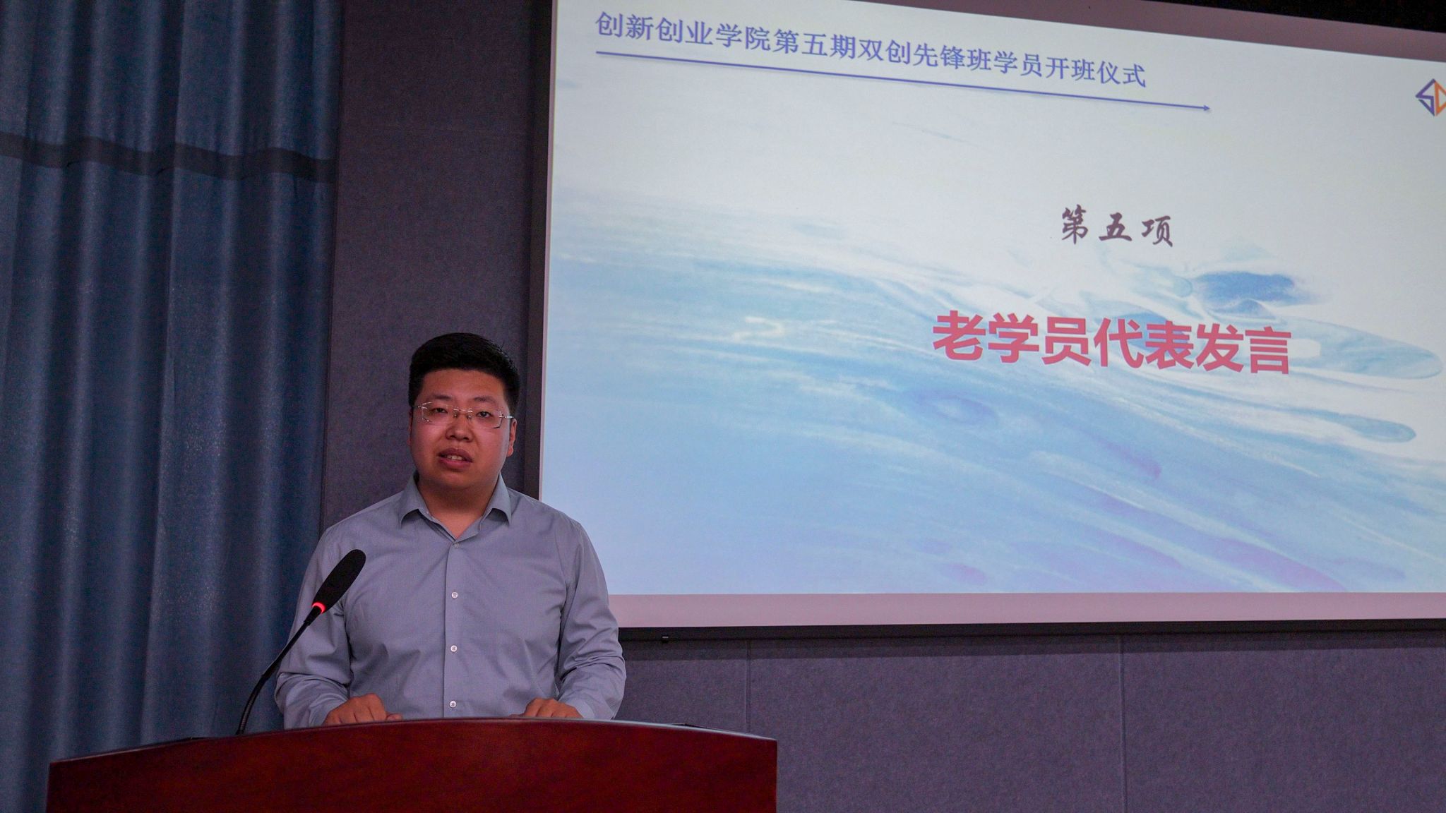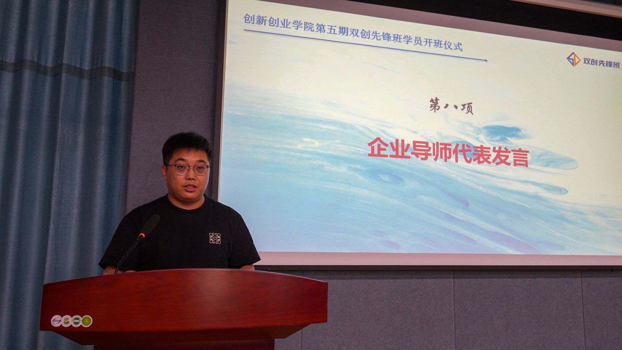 双创先锋班新学员代表段雅倩在发言中,她首先表达了自己作为新成员激动、期待与感激的心情——激动源于经过选拔加入充满活力的集体,期待开启创新学习之旅,感激则送给搭建平台的学校领导、筹备的老师和所有支持者。老学员代表郭佳承在发言中,首先感谢学校、创新创业学院及老师们的支持,让自己及学员们在平台上获得成长;接着分享自身经历,通过项目实践实现理论到价值的转化并获得千万级投资。