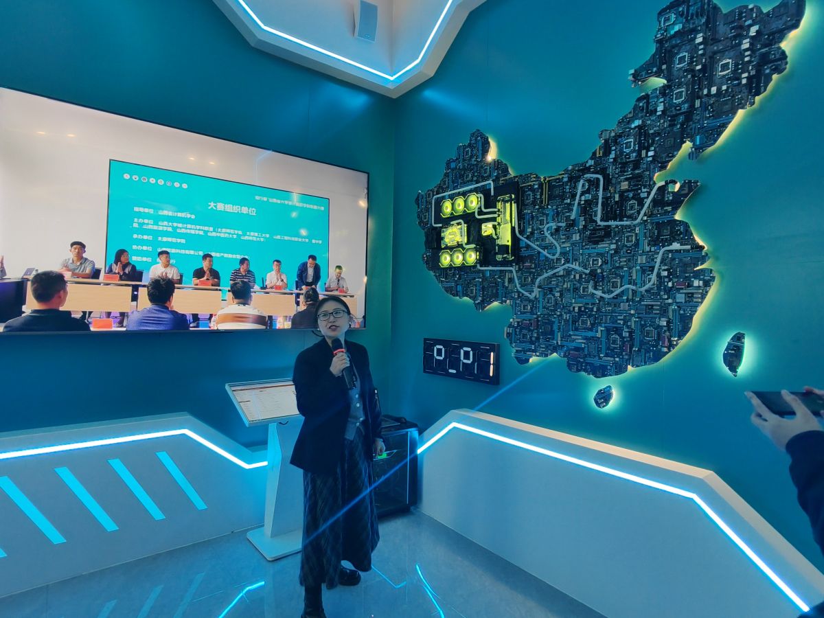 随后,学员们前往山西软赢科技有限公司。该公司以科技型企业定位,其建设和装修对标北京中关村和互联网大厂,尽显前沿科技公司的气派与格调。在专业人员带领下,学员们参观了公司前台、主管办公室、校企合作主管办公室以及展厅等区域,展厅内的大屏和智能地图更是让人眼前一亮。学员们深入了解公司的发展状况,通过学习了解到,公司的业务范围涵盖科技成果转化、协同企业攻克技术难题、举办国家级比赛等诸多方面,其中人工智能、网络安全等前沿方向是公司未来发展的主要方向。