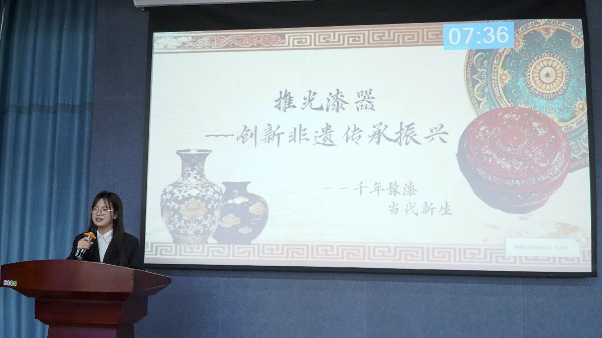 23支团队通过路演答辩、实物展示及情景模拟等多种形式,全面展示了项目的可行性,并将自身专业知识与非遗领域深度融合,充分彰显了项目的创新性。“皮影戏传承与创新”团队以皮影戏为核心,结合AR技术开发了互动式皮影戏体验平台,用户可通过手机扫描皮影角色,观看动态剧目并参与剧情创作;“3D非遗拓印工坊”团队专注于非遗拓印技艺的现代化应用,通过3D扫描技术,团队将传统碑刻、器物纹样转化为数字模型,并开发了可定制拓印的文创产品;“平遥推光漆器髹饰”团队聚焦平遥推光漆器的传承与创新,针对传统漆器制作周期长、成本高的痛点,团队研发了环保型速干漆料,并设计了可拆卸的模块化漆器结构。决赛项目精彩纷呈,赢得现场评委称赞认可。
