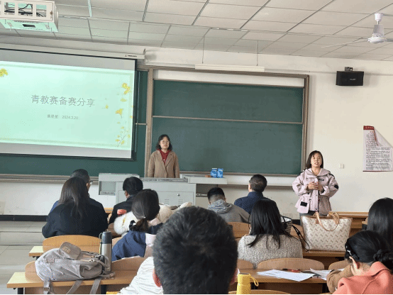 活动伊始,教研室主任冯洋洋老师向大家介绍了本次会议的主题和目的,强调了青教赛对于青年教师成长的重要性,并提出了自己的经验,鼓励参赛教师们要不断磨课,不断调整,不断完善,并邀请了教学经验丰富的裴星星老师向我们进行经验分享。