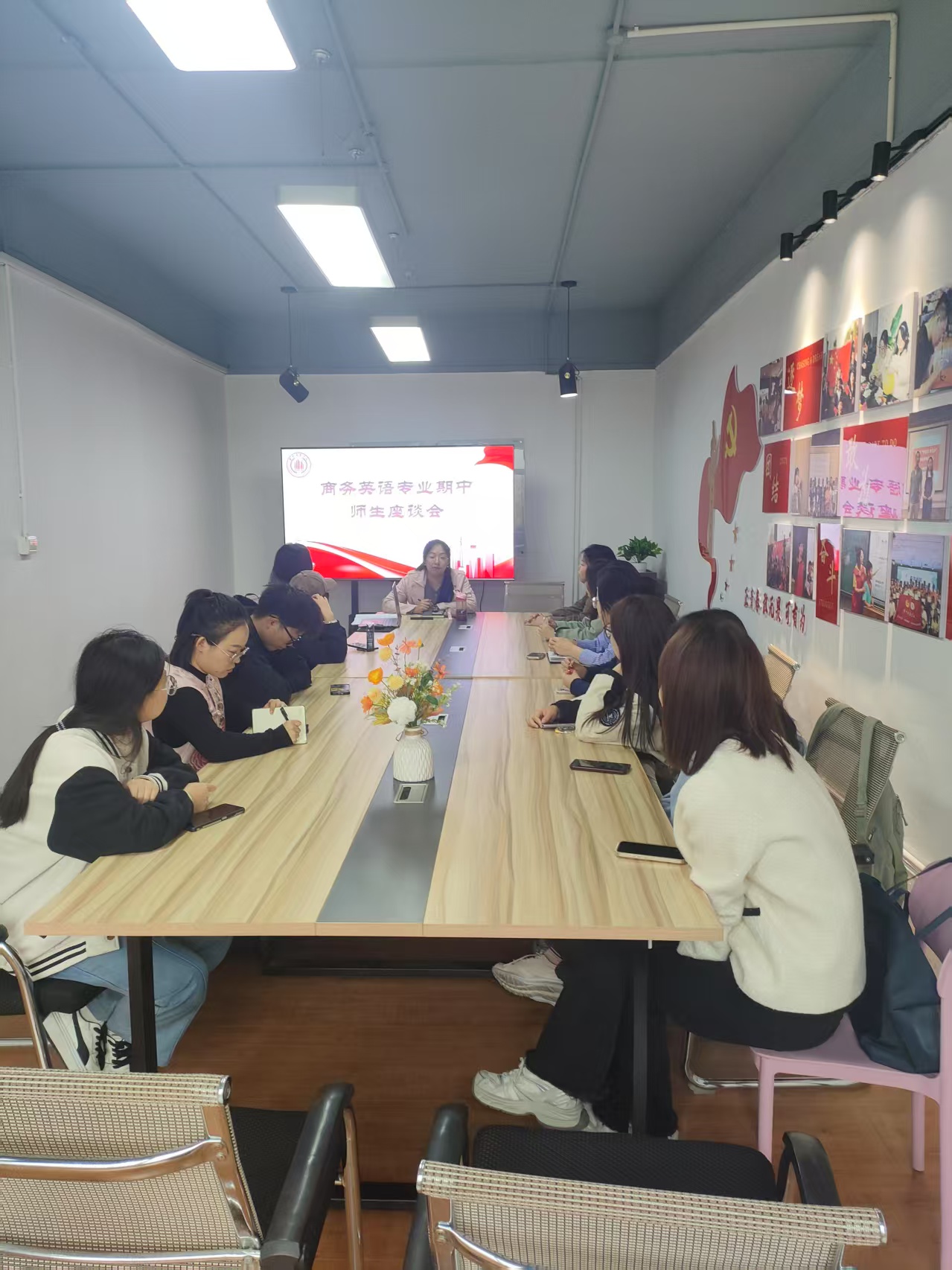 为搭建师生沟通桥梁,促进专业高质量发展,商务英语专业教研室于4月9日在杏花书院先锋驿站召开本学期期中教学师生座谈会。本次座谈会围绕教师教学、教学管理、教学保障、学风建设等方面展开深入研讨。教研室主任梁欢、任课教师及各年级学生代表参加。