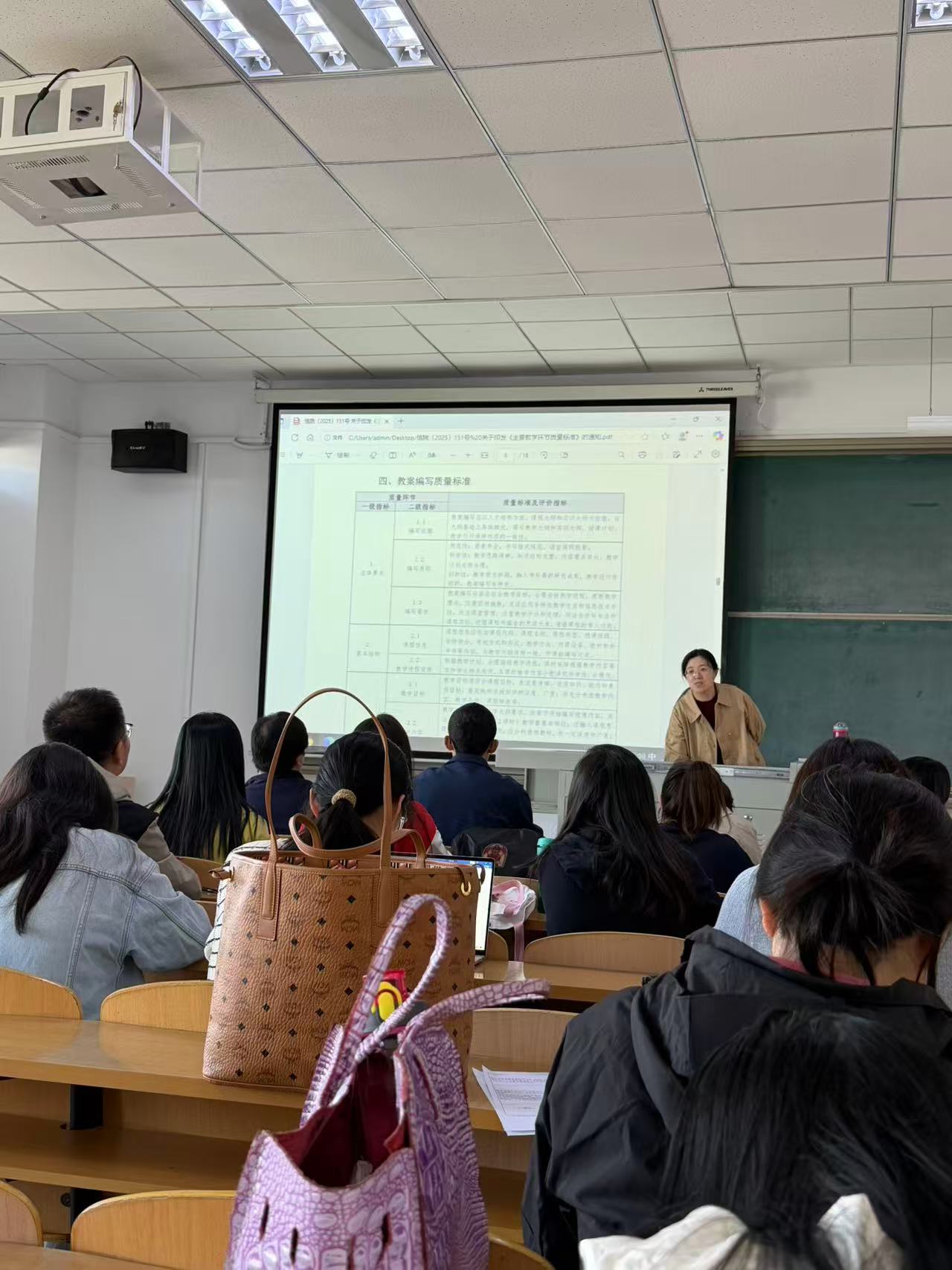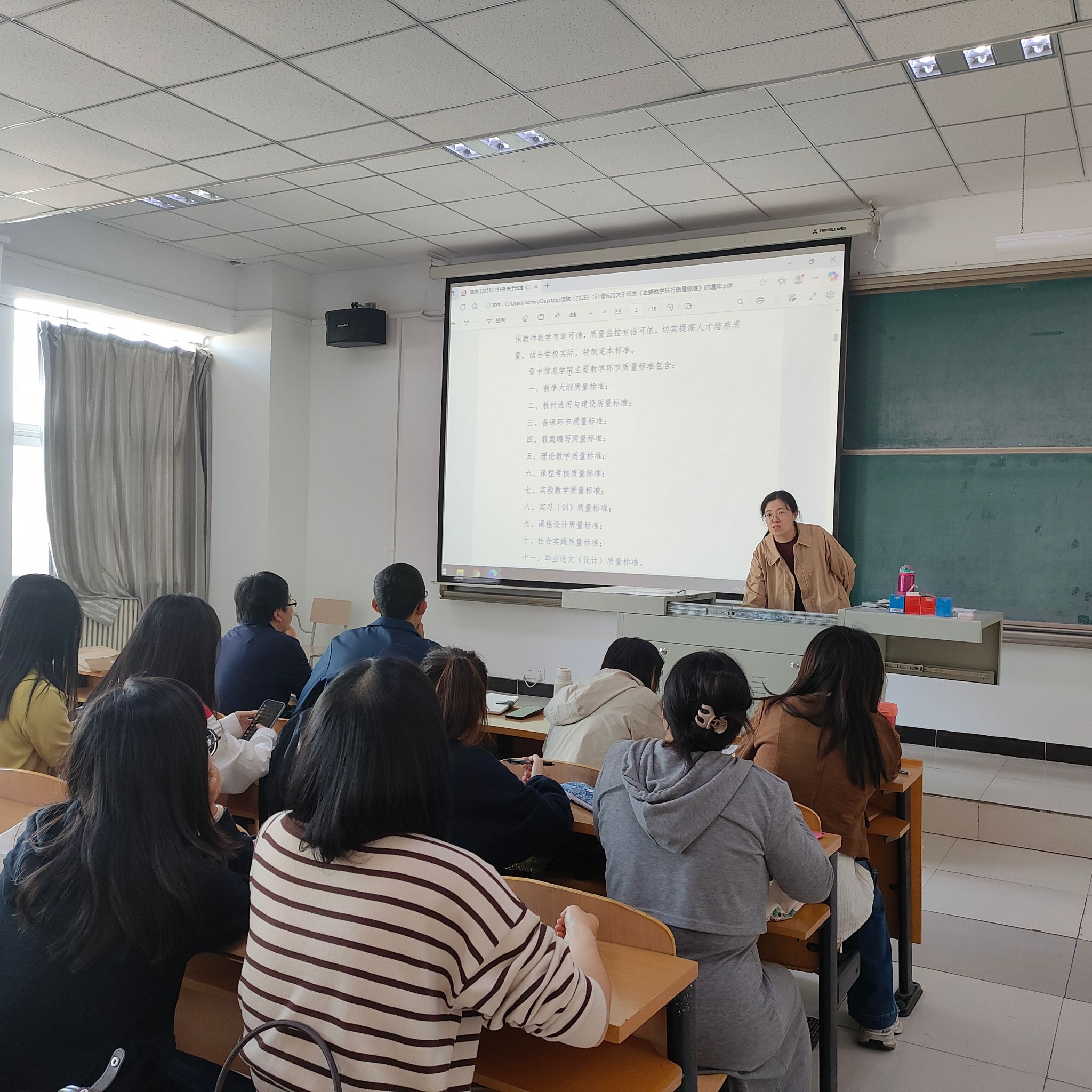 会议伊始,张老师带领全体教师对《主要教学环节质量标准》进行了系统解读。该标准涵盖教学大纲、教材选用、备课授课、课程考核、毕业论文等十一大教学环节,为构建高质量教学体系提供了精准的“施工图”。张老师强调,全体教师须将文件精神学深悟透,牢固树立质量意识,将标准中的每一项要求转化为自觉的教学行动,真正做到“教学有章可循,监控有据可依”。