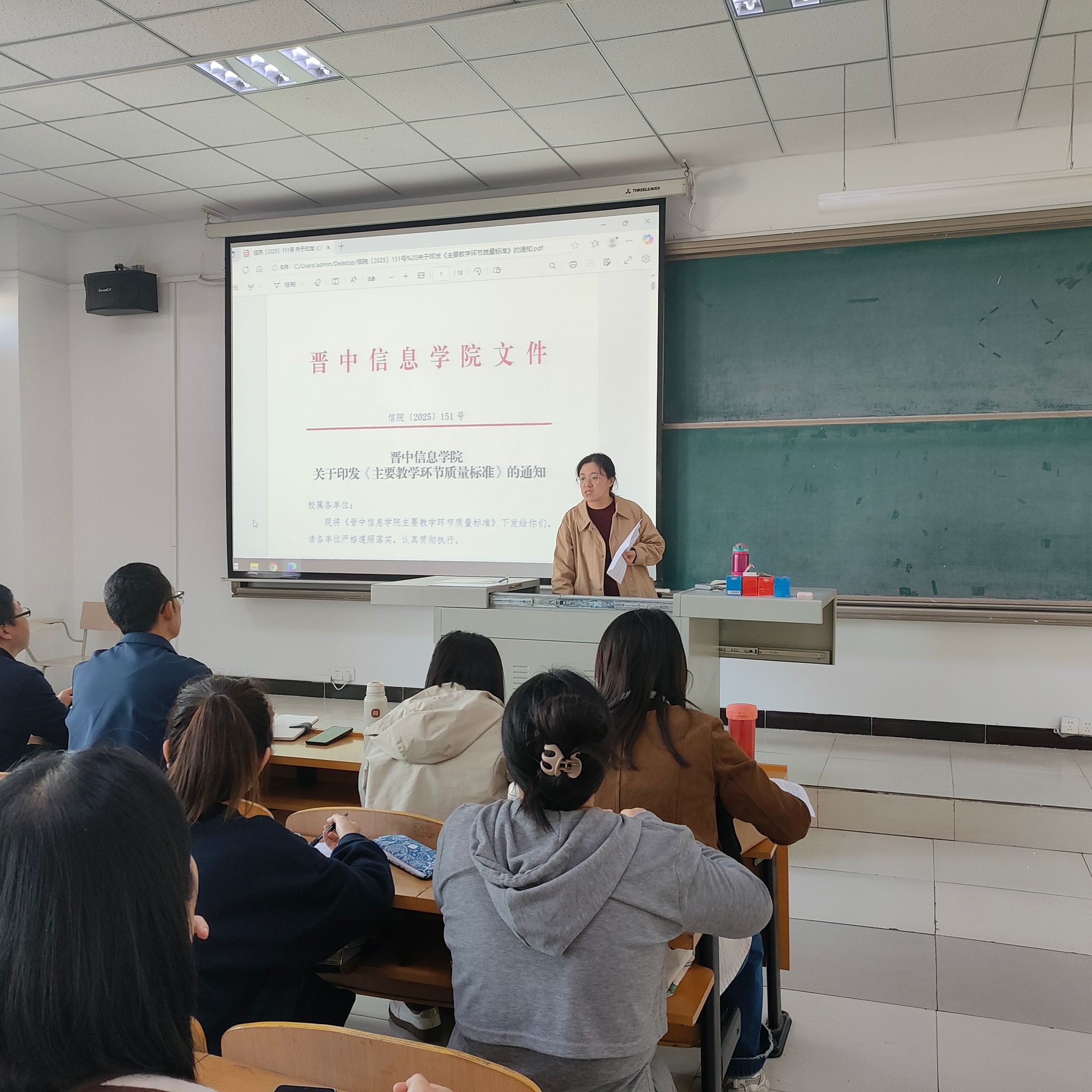 9月24日,商务英语学院英语专业教研室召开专题工作会议,以“深学笃行、严抓细管”为主题,组织全体教师集中研学学校最新印发的《晋中信息学院主要教学环节质量标准》(信院〔2025〕151号),并以此为指导,对新学期教学规范与期末重点工作进行精密部署,旨在全面提升人才培养质量。全体教研室教师参会,会议由教研室主任张玉洁主持。