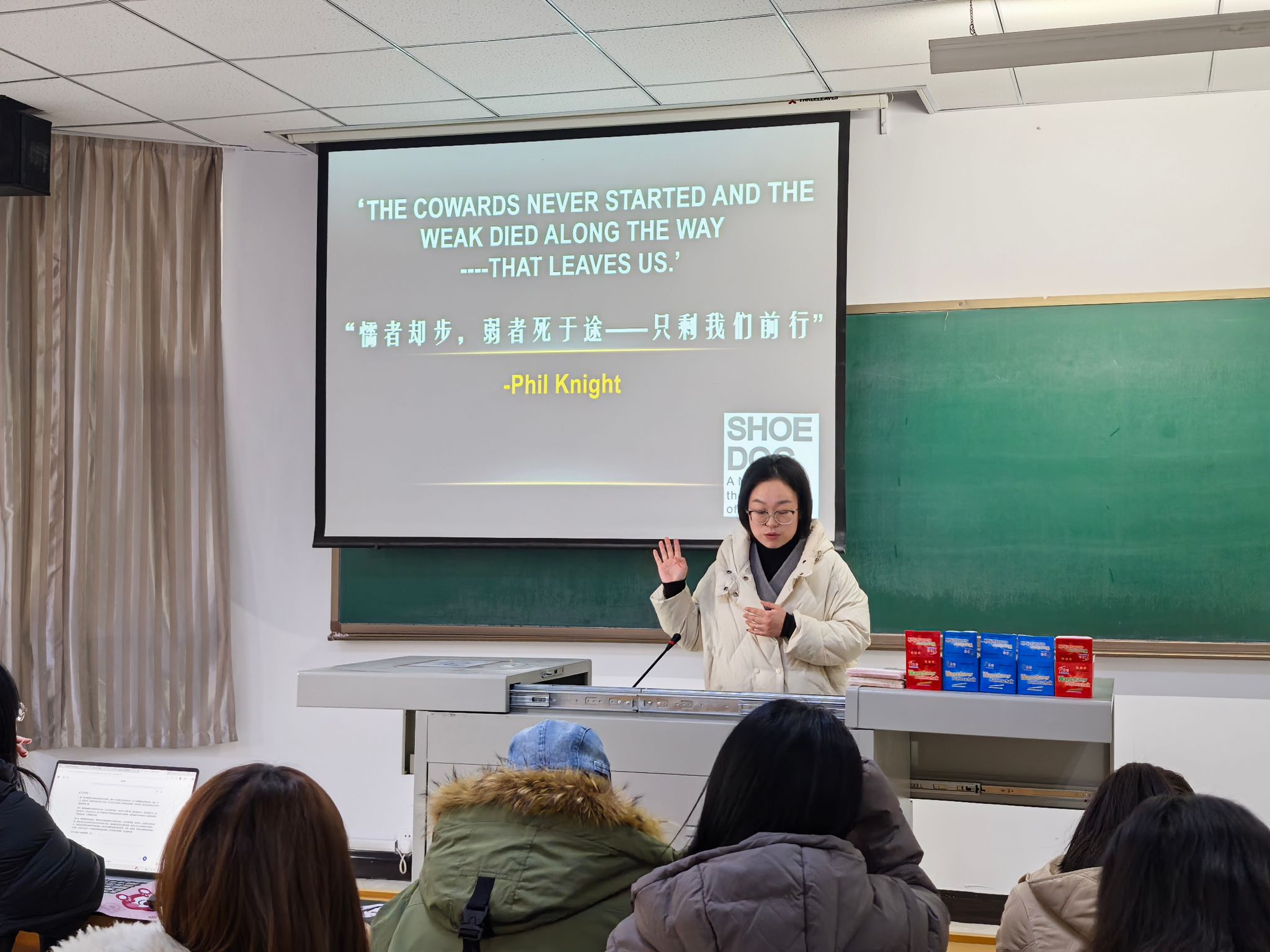 活动现场氛围热烈,分享环节干货满满。首先,贺婕老师以耐克创始人菲尔・奈特的自传《鞋狗》为分享书目,围绕一个创意、两个发明、三个危机的核心脉络,生动还原了耐克从初创时的艰难探索到成长为全球运动品牌巨头的奋斗历程。她结合书中坚持初心不放弃、直面挫折敢突破、灵活应变求发展的商业精神,深入探讨了其对商务英语教学的现实启发。贺婕老师建议,可将案例转化为课堂讨论议题、情景模拟脚本,让学生沉浸式体验商业逻辑,建立诚信经营、坚韧不拔的职业价值观。
