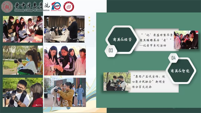 此外,与各外部媒体、新闻宣传团队保持密切联系,分享精华新闻,整合信息渠道,从“幕后”走向“台前”,独立举办大型活动,商英新闻宣传工作者开通“完满列车”,加大“执行力”,增强“凝聚力”,扩大“影响力”,榜样的力量应当被无限放大。
