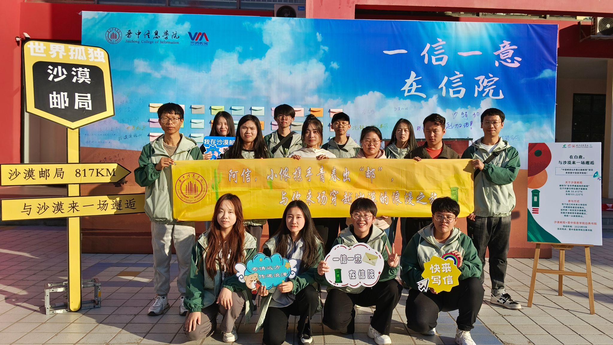大三,我迎来了更广阔的舞台。作为白燕书院首届学生会副主席,我肩负起了更多责任,从稿件的精心撰写到视频的创意拍摄,再到与多个学院工坊的紧密对接,我努力推动双院联动,让学术与实践在互动中碰撞出璀璨的火花,丰富同学们的校园生活。受暑期三下乡影响,一个集公益与文化于一体的社团——沙漠绿洲X邮局社诞生,在中国邮政&沙漠邮局联名晋中信息学院专属明信片后,入驻白燕书院,依托现有书院一站式发展平台,通过附有限定款幸运邮戳的信件带给书院学子治愈瞬间,在满足精神文化需求的同时融入家文化元素,将我校完满浸润其中。到目前为止已经成功联动山西农业大学举办了“青春出‘邮’ 信遇农友”的跨校合作活动,以及“一信一意 在信院”风景邮戳创意设计大赛,每一份信件,每一枚邮戳,都承载着学子们对生活的热爱和对未来的期许。