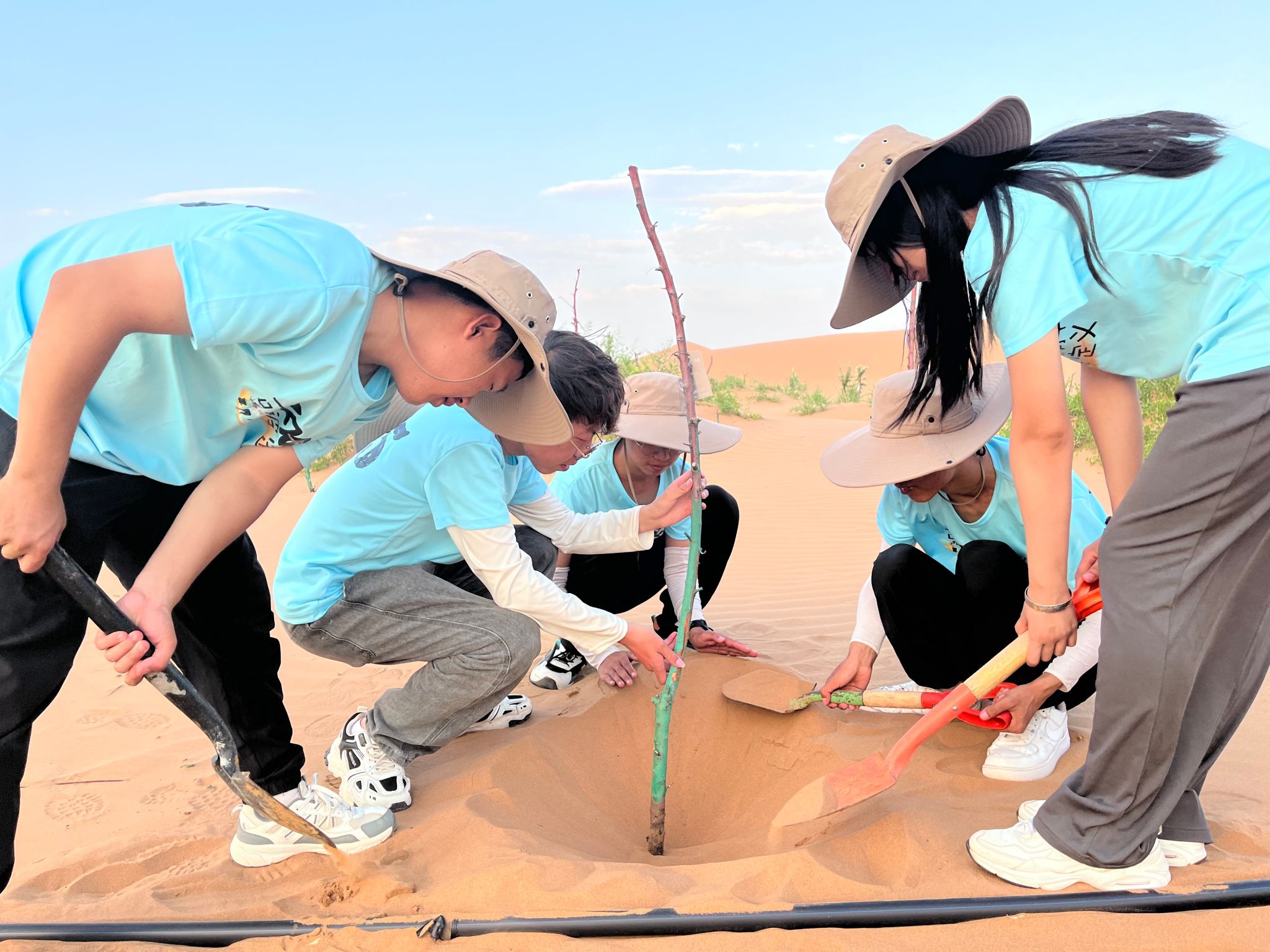 转眼间,大二的我在志愿服务中找到了新方向。无论是迎接新生时的热情服务,还是校园运动会中的后勤支持,我都全力以赴,享受着奉献带来的快乐。同时,我也开始尝试组织策划各类活动,从最初困惑的“怎么做?”到后面坚定的“这么做!”,每一步都见证了我的成长。在暑期,我参加了晋中信息学院白燕书院同心燃梦乡村振兴促进团三下乡暑期社会实践活动,跨越千里前往宁夏回族自治区中卫市海原县,与石头汤公益田老师一同带领留守儿童读绘本、做游戏、拼乐高,建立与信院学子的默契和连接。更在内蒙古阿拉善左旗的腾格里沙漠中,与实践团成员一起利用稻草做成方格沙障,在中间种植梭梭,希望它能够在沙漠中茁壮成长,绽放出更美丽的沙漠之花。那份对自然的敬畏、对挑战的热爱,至今仍激励着我前行。