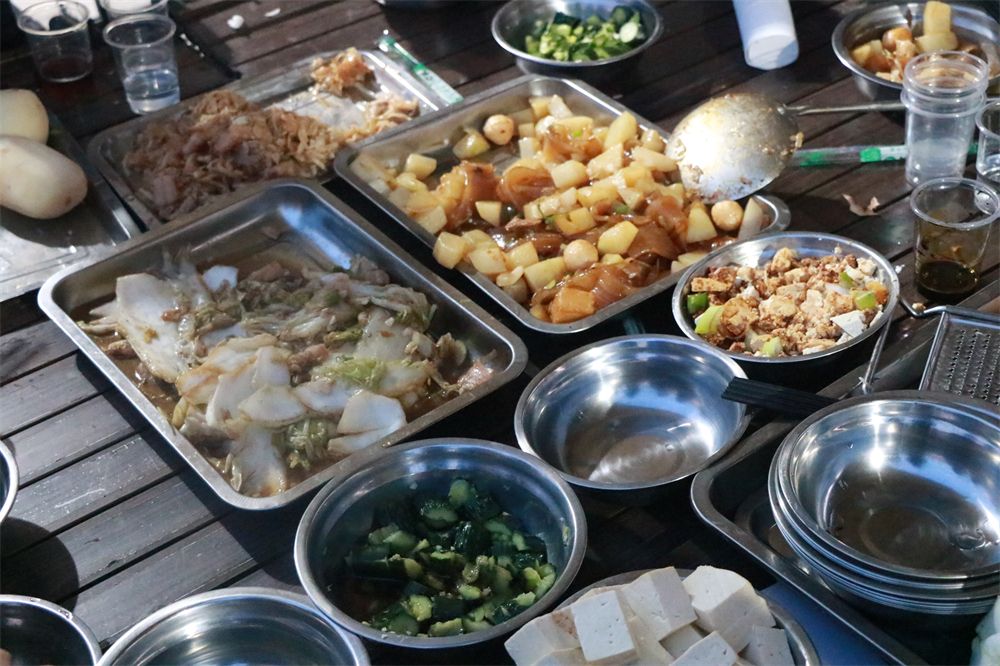 夜幕降临,切菜声、添柴声与偶尔的轻笑交织。当热腾腾的汤羹飘起香气,众人围坐分享这顿由分工与默契烹调的“战地晚餐”。