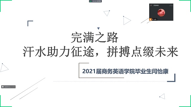 通过PPT详细介绍了闫怡康同学从初入大学时的迷茫到活跃在校园的各项赛事、从兴趣爱好发展到职业选择、再到跨专业考研(英语跨体育),无疑是一次次的挑战和跨越。闫怡康同学之所以能取得如此耀眼的成绩,既源于她对个人兴趣的执着追求,更离不开学校的完满教育平台。这个平台滋养着每一位学生的梦想与热爱,使它们得以茁壮成长,最终发展成为自己的事业。