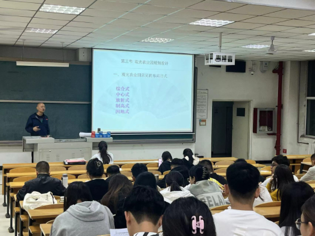 詹老师给我们讲解了观光农业园区通过其建筑设计展现了实用功能与审美价值的高度结合,创造出能够令游客深度体验自然之美的环境。这些园区内的建筑不仅注重满足游客的功能性需求,还具备显著的艺术审美价值,与周围的自然景观相互和谐共存,从而为游客提供了亲近自然的独特机会。此外,建筑的规模与风格均经过精心设计,以确保它们能够完美融入所处的自然环境中,避免在视觉上盖过农业展示的重要性。这种兼顾实用性与艺术性的设计理念,都在为游客提供一种与众不同的旅行体验,让他们能够在享受现代农业成果的同时,也能感受到建筑与自然融合的美学魅力。