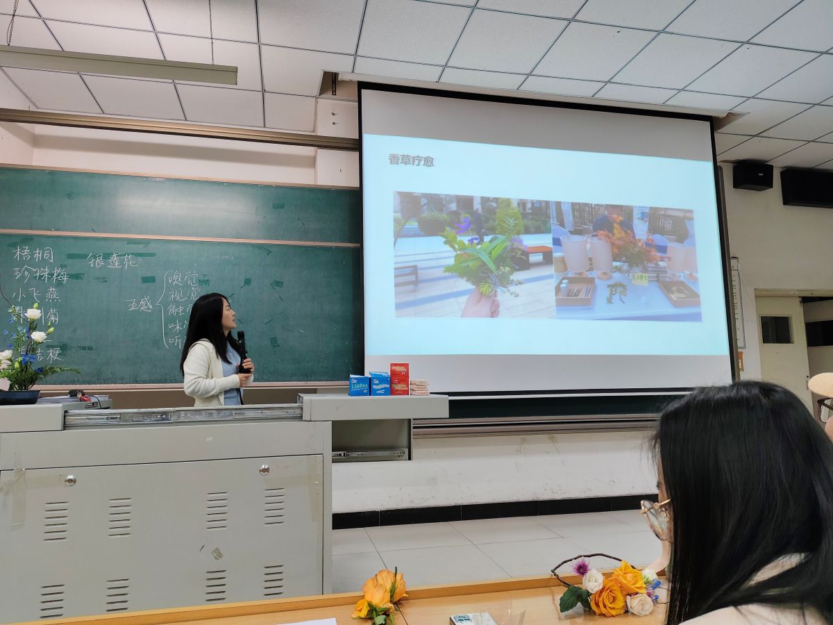 随后,张教授深入讲解植物疗法的起源与发展。她追溯了植物疗法在人类历史长河中的足迹,从远古时期人类对植物的简单利用,到如今植物疗法成为一门系统的学科,其背后蕴含着人类对自然力量的敬畏与探索。在植物疗法的理论与实践环节,张教授详细阐述了植物如何通过其化学物质、能量场等作用于人体,调节生理机能和心理状态,并结合实际案例,分享了在不同场景下运用植物疗法改善睡眠、缓解压力、调节情绪的成功经验,让抽象的理论变得通俗易懂。此外,张教授重点介绍了五感疗法案例。通过视觉观赏植物的色彩与形态、听觉聆听风吹植物的沙沙声、嗅觉感受植物的芳香、味觉品尝植物茶饮或食物、触觉触摸植物的质地,全方位调动人体感官,实现身心的深度疗愈。一个个鲜活的案例让同学们深刻认识到,植物疗愈并非遥不可及,而是可以融入日常生活的实用方法。