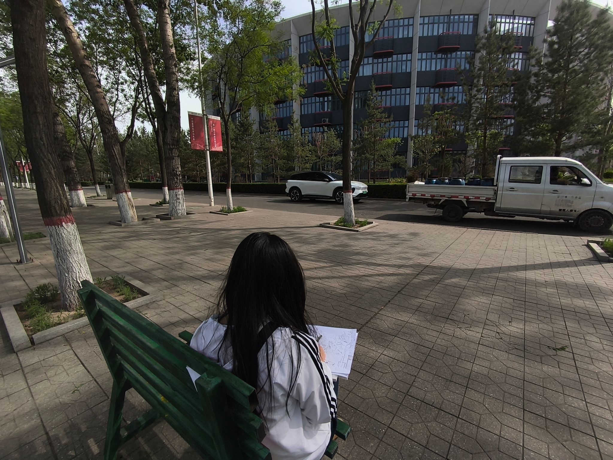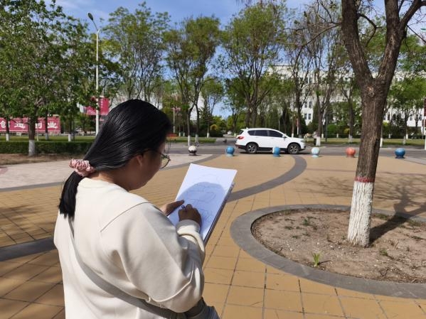 春意盎然,万物生长。为引导学生感受自然之美、提升艺术实践能力。4月27日,食品与环境学院园林(专升本)2404班在校园自然景观区举办了一场户外写生活动。本次活动由学业导师王玉虎指导,在结合园林专业特色的情况下,以校园树木为创作对象,通过线条的细腻勾勒,让学生在自然中捕捉春日的灵动与生机,进一步深化艺术与自然的融合。
