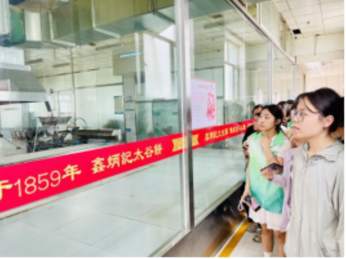 在《食品机械与设备教学实践》中,食品安全专业师生走进山西鑫炳记食业股份有限公司,实地参观食品生产线,深入了解食品机械的结构原理与实际应用。通过对太谷饼生产工艺的现场观摩,同学们从物料输送、成型、烘烤到包装等各环节,对设备运行原理与生产流程有了直观感受。实习过程中,学生积极与企业技术人员交流探讨,将课堂所学与行业实际紧密结合,不仅加深了对食品机械设备知识的理解,更增强了对未来职业方向的认知与规划。