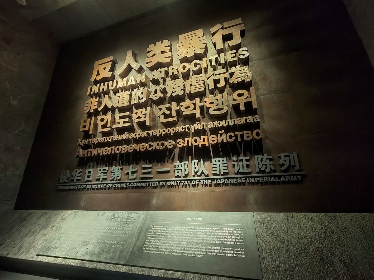 7月6日上午,赛事主办方组织参赛学生参观侵华日军第七三一部队遗址纪念馆,让学生们在历史现场接受一次深刻的爱国主义教育。走进遗址园区,灰色的建筑、斑驳的标语、锈迹斑斑的实验设备残骸,无声地诉说着那段惨痛的历史。在“人体实验”展区,泛黄的照片、幸存者的证词、冰冷的刑具让空气都变得沉重,学生们脸上的笑容渐渐消失,脚步也放慢了许多。大家目睹了课本里学过七三一部队的罪行,但亲眼看到这些证据,才真正体会到“反人类暴行”五个字的重量。