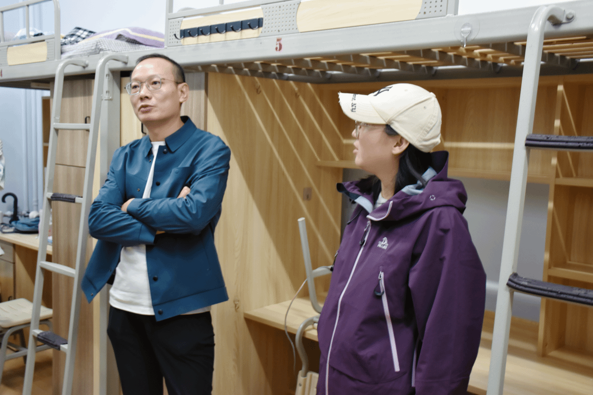 夜幕降临,一天的迎新工作已接近尾声,但温暖的故事仍在继续。张海明院长、郭杰院长以及辅导员老师们并未停下脚步,他们心系新生,专程前往宿舍看望。走进宿舍,老师们坐在新生身旁,像家人般拉起家常,从住宿是否习惯、饮食是否适应,到校园里的教学楼分布、图书馆使用方法,细致地为新生介绍校园生活的点点滴滴。“最近天气转凉,记得及时添衣,照顾好自己。”温和的叮嘱里满是关切,像一股暖流涌入新生心田,抚平了他们初来乍到的局促与不安,让校园的暖意在暮色中慢慢浸润人心。