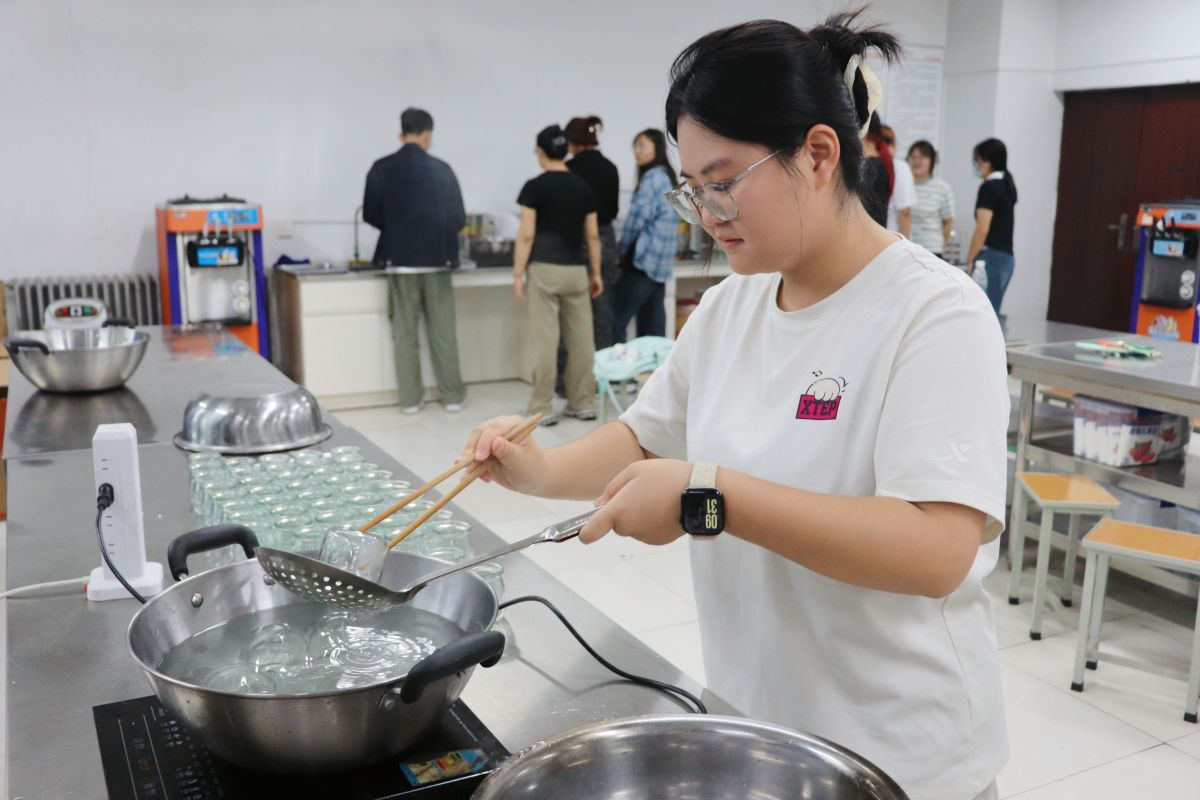 实验楼内,一场“甜蜜行动”正在悄然进行。学长学姐们化身“手作达人”,精心为新生准备专属礼物。雪白的酸奶如同云朵般被缓缓舀进透明玻璃罐,浸在清甜糖水中的梨块泛着诱人的润亮光泽,每一份食材都承载着学长学姐对新生的美好期许。封装完毕后,志愿者们小心翼翼地将这些充满心意的罐头递到新生手中,这份独一无二的手作礼,不仅是味蕾的甜蜜体验,更是大健康学院为新生送上的第一份温暖问候,让初来乍到的他们瞬间感受到家的温馨。