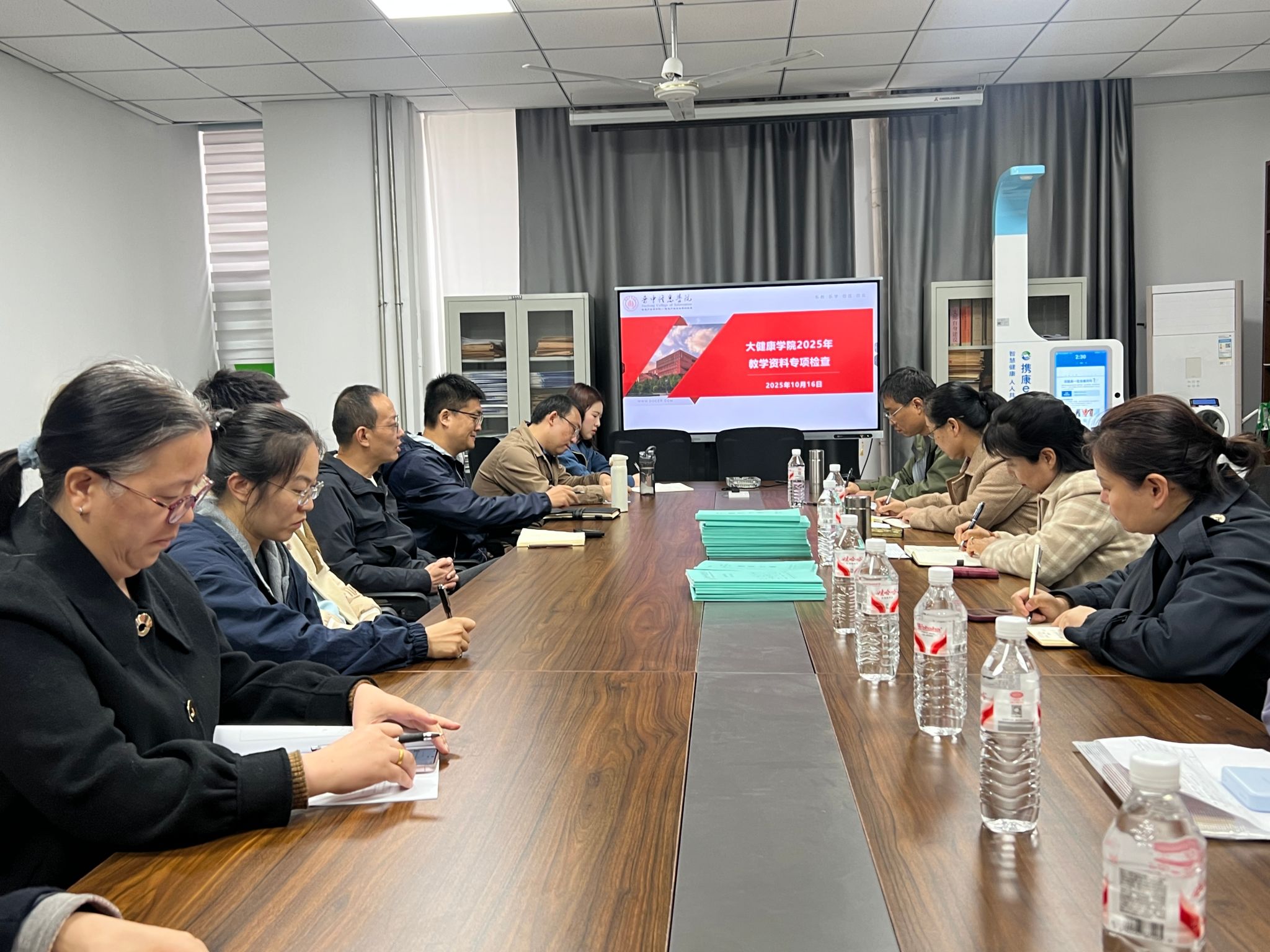 为进一步规范教学管理,强化教学质量监控,切实提升人才培养水平,10 月 16 日,大健康学院组织开展教学资料专项检查会议。此次会议由大健康学院张海明院长主持,校级督导刘今凡、杨瑞平、张晋及教务处、教师发展中心相关工作人员受邀莅临检查,学院相关教学管理人员、教师代表全程参与。