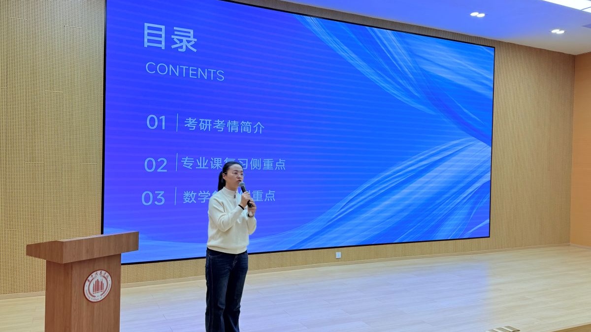 为助力考研学子精准复习、高效备考,10月23日,由大健康学院举办的“考研复习规划辅导讲座”在博学楼ST报告厅顺利举行。本次讲座邀请大健康学院食品教研室教师李晶主讲、李晶老师本科毕业于江南大学食品专业、硕士毕业于中国海洋大学食品专业,曾在专业机构从事七年食品类专业考研辅导的经验。