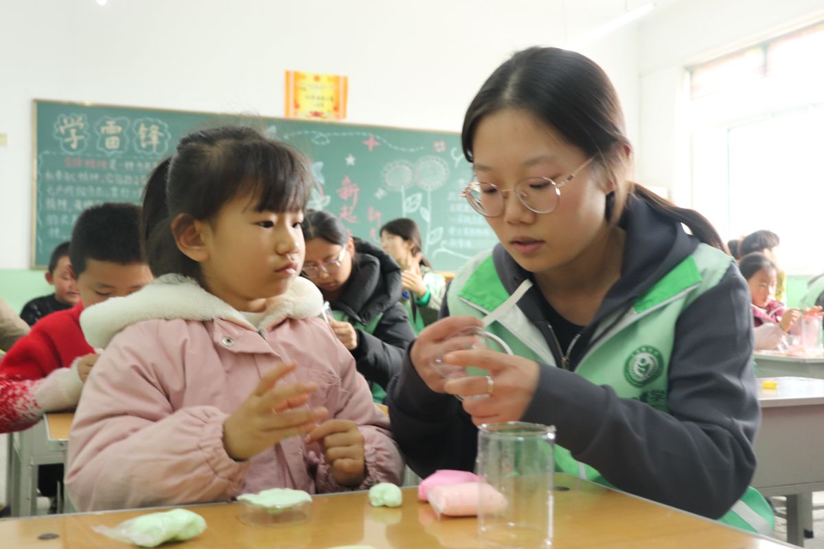 队员们提前进行了充分的准备工作,备齐了彩纸、黏土、画笔等材料,并提供了废旧饮料瓶、纸箱等物品,旨在让孩子们在更有趣、更具互动性的环境中体验艺术、展现创意。