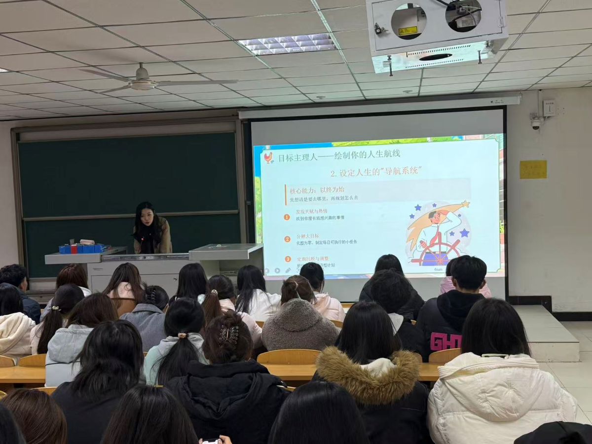 目标规划,让梦想照进现实。“大家觉得自己人生的短期、中期、长期目标是什么?”常佳老师抛出的问题引发了大家的热烈讨论。同学们踊跃发言:有人短期要冲刺英语四级,有人中期计划寻找实习机会……这些看似简单的规划,却透露出每个人对自我方向的清醒认知。正如“鸡排主理人”李俊永,他明确“四点后只服务学生群体、固定时间地点出摊”的原则与目标,才让他的小摊在众多摊位中脱颖而出,拥有了鲜明的辨识度。我们亦当如此——唯有目标清晰,方能在前行的路途中不迷失方向,步履坚定。