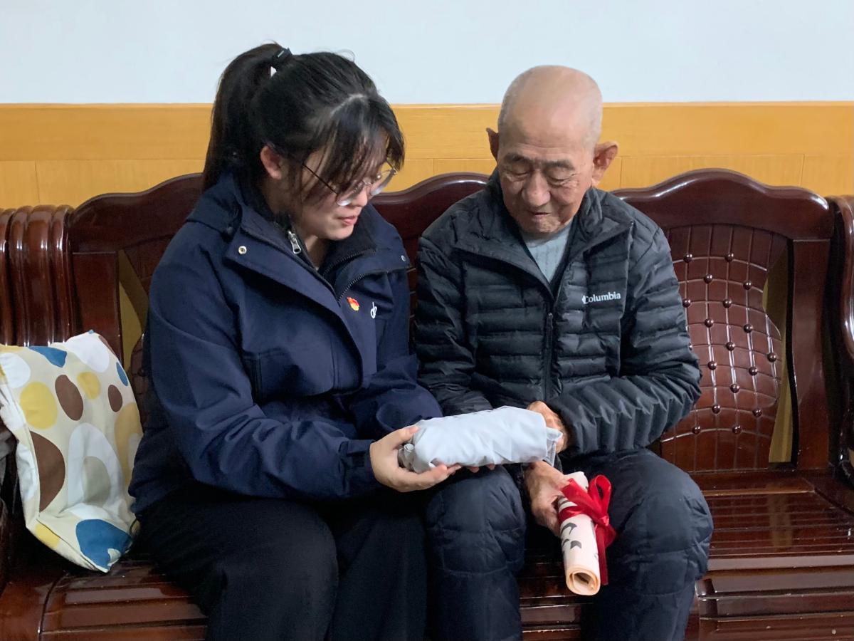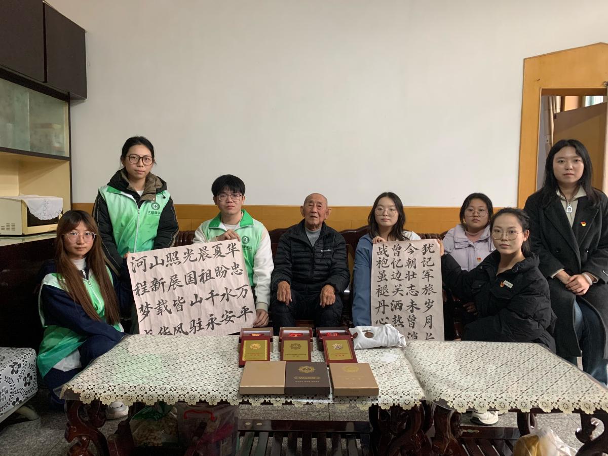 当耳畔的岁月絮语渐歇,温馨的赠礼时刻便悄然铺展。志愿者们将精心创作的毛笔字作品郑重递到老人手中,笔锋流转间,不仅是青年学子扎实的书法功底,更满盛着对这位英雄的崇高敬意与深切祝福。老人手捧作品,指尖轻抚宣纸字迹,眉眼间满是被铭记的欣慰,这份跨越代际的心意,在秋日的房间里悄然升温,化作最动人的情感共鸣。