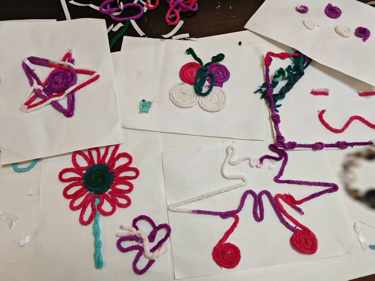 进入创作环节,同学们围绕“青春”这一主题,充分发挥自己的想象力和创造力。有的同学巧妙地用彩色毛线编织出象征梦想的翅膀,寓意着在青春的天空中勇敢追逐理想;有的同学则以布料边角料粘贴成青春纪念册的模样,将校园里的美好回忆一一复刻;还有的同学通过不同颜色和材质的搭配,打造出充满活力与个性的纤维作品。在创作过程中,大家全神贯注,沉浸在自己的艺术世界里,不时相互交流灵感,分享创作心得。整个工坊内洋溢着浓厚的艺术氛围,每一件作品都凝聚着同学们对青春的独特理解和感悟。