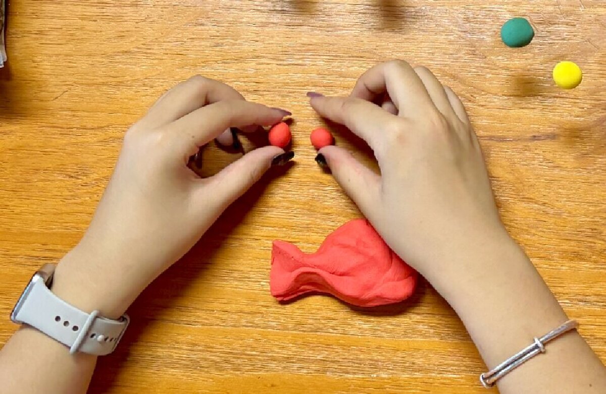塑料瓶改造的最后一笔颜料晾干时,粘土创作随即接棒,将生态构想从抽象概念落地为具象模型。水生态模块中,小块粘土先被搓成圆润水滴,再与扁形粘土捏合的小鱼精准贴合,生动模拟出“水与生物”的共生关系,直观呈现校园水系生态的基础构成;植被层级模块则严格遵循自然比例,用浅绿粘土贴附出底层 “地被植物”,深绿粘土塑形中层“灌木”,最后以少量粘土点缀顶层“乔木”,完整复刻校园本土植物群落的垂直结构;人文互动模块由队员魏语函主导创作,她将长条粘土搓压成迷你“休憩座椅”,巧妙嵌入模型场景,既丰富了生态场景的实用性,也体现了“人与自然和谐共处”的设计理念。