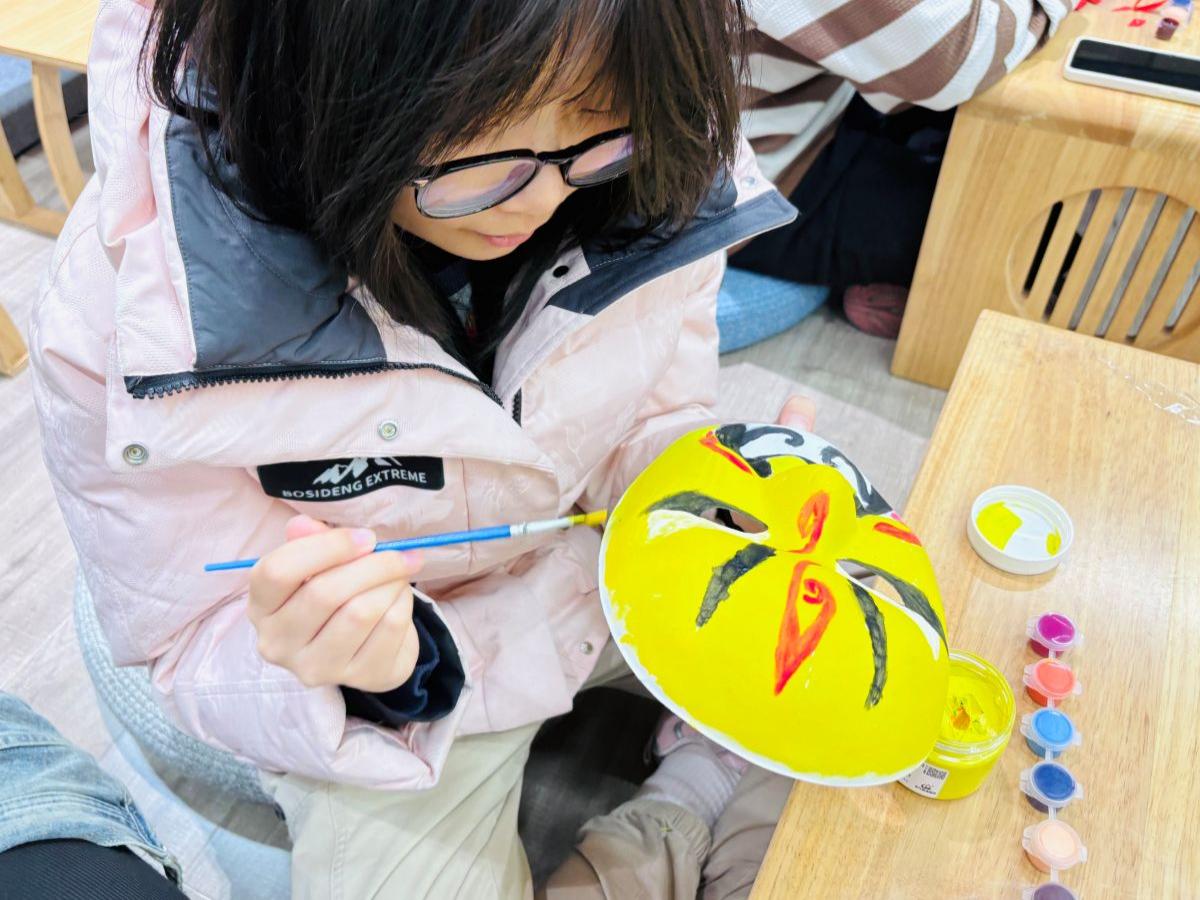 活动现场暖意融融、创意涌动,红纸、剪刀、石膏坯体等材料整齐铺陈,传统非遗的古朴与青春潮流的鲜活在此碰撞交融。同学们执剪凝神,折叠红纸细酌剪裁角度,指尖翻飞间,一件件兼具传统韵味与青春气息的作品应运而生。醒狮石膏彩绘时,沿用经典配色彰显喜庆,或融入渐变、撞色等现代设计,让非遗在画笔间焕发新彩。脸谱绘制中,同学们既还原经典脸谱的线条色彩,也结合现代审美大胆创新,深度体悟戏曲非遗的深厚底蕴与艺术魅力。