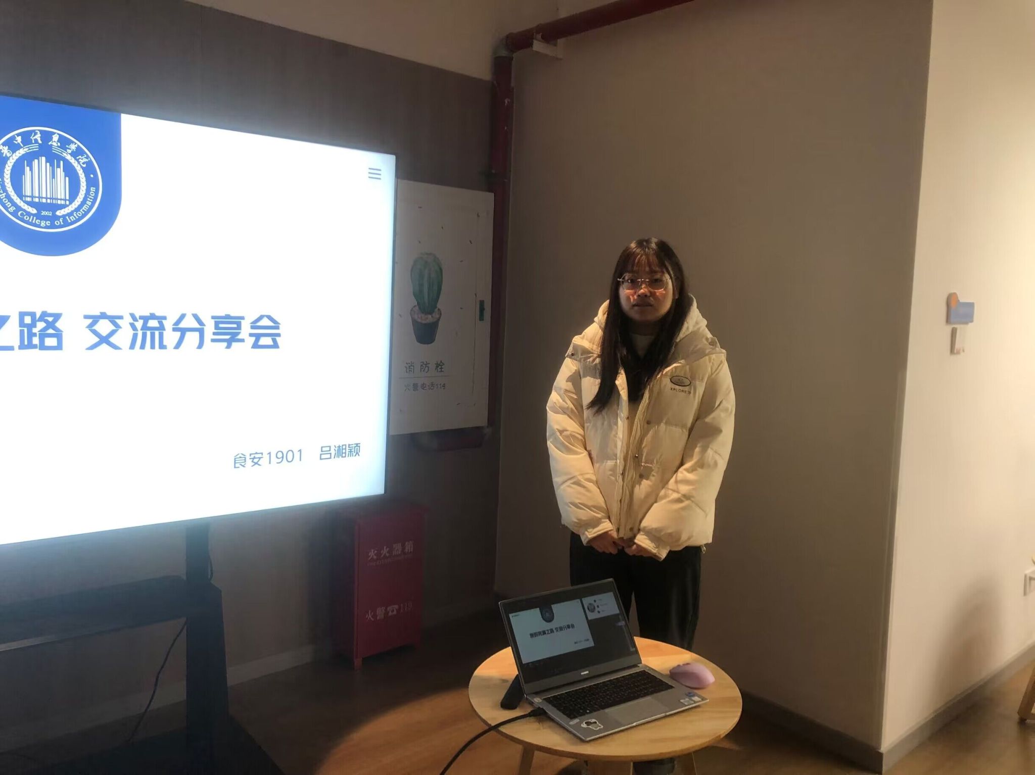 为发挥优秀校友的榜样作用,引导和激励在校生志存高远,奋发成才,合理规划自己的大学生涯,12月10日9:00,学院邀请食品质量与安全专业1901班吕湘颖于毣谷书院胶囊书局开展题为“我的完满之路”优秀校友事迹分享会,主要讲述了她在完满教育中的收获、如何合理安排学生会工作与学习时间、考研备考过程等内容。