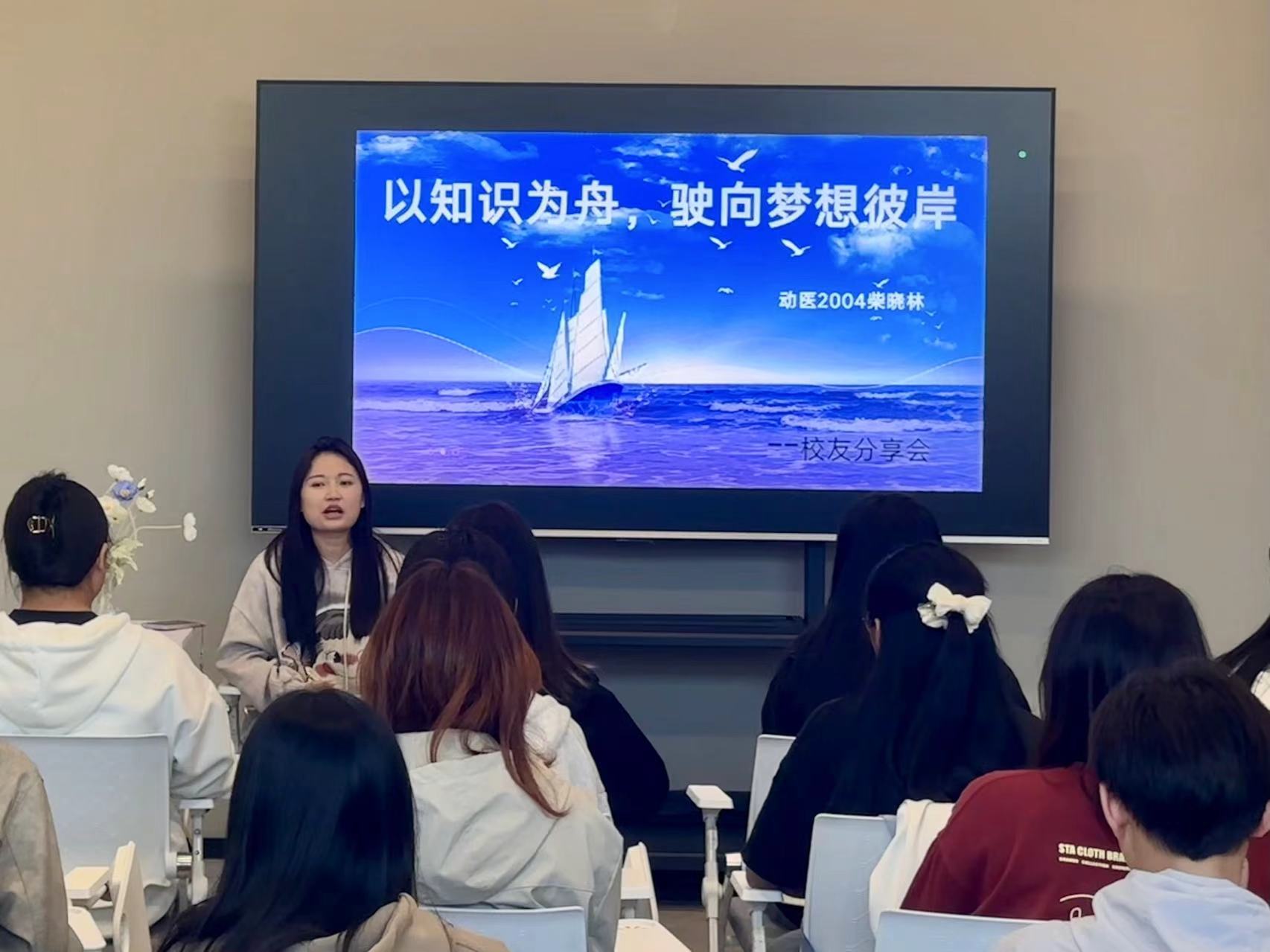 9月24日邀请动医2004班柴晓林与我院学子共话成长,分享她宝贵的经验。这场分享会不仅是一次知识与经验的传递,更是一次心灵的交流与碰撞,让在场的每一位学子都深受启发,对未来充满了无限的憧憬与期待。