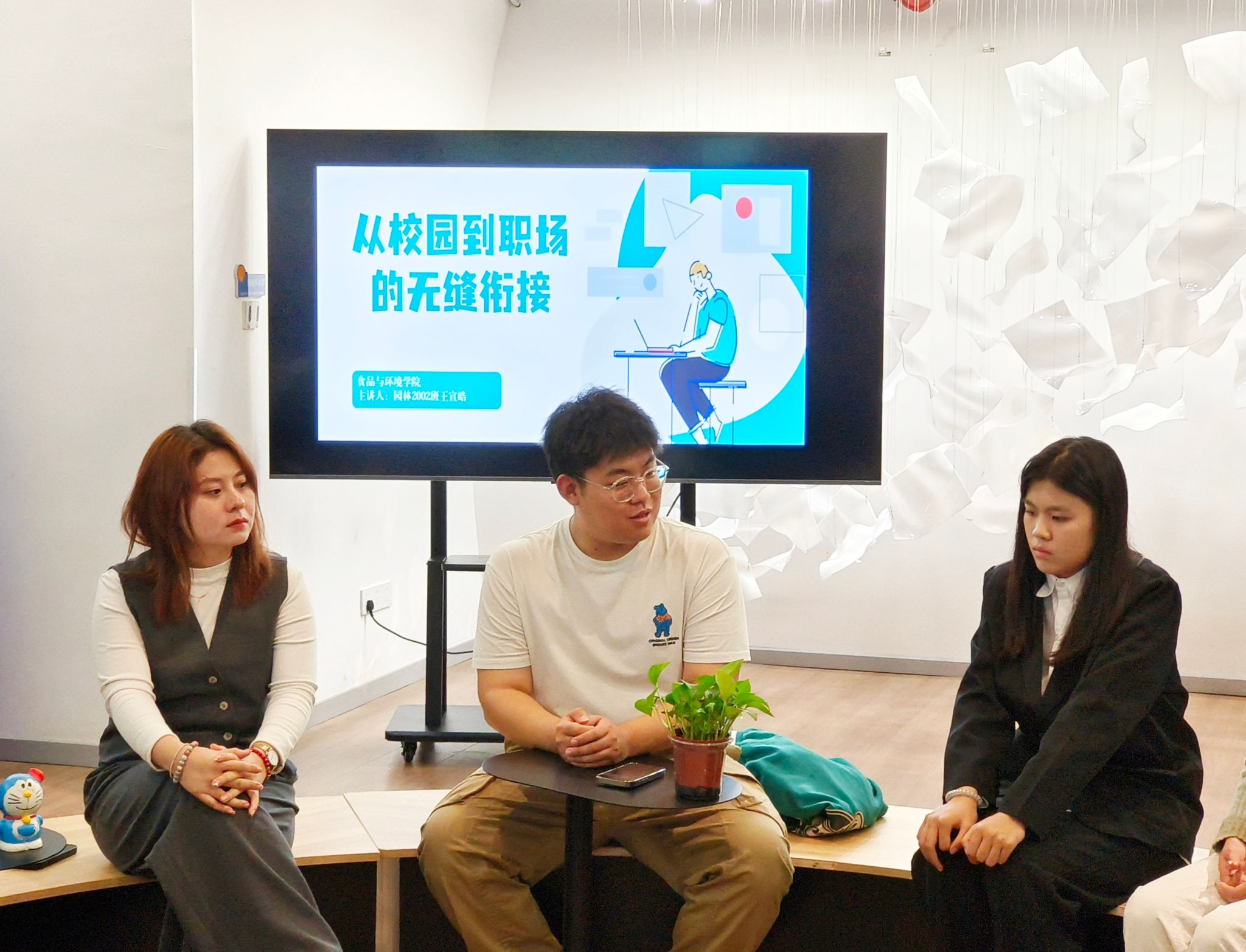 10月17日,食品与环境学院于毣谷书院胶囊书局举办“职路领航:从校园到职场的无缝衔接”校友分享会,邀请杰出校友王宣皓担任主讲嘉宾。王宣皓以满腔的热情和丰富的经验,为学弟学妹们描绘了一条从校园迈向职场的清晰路径。