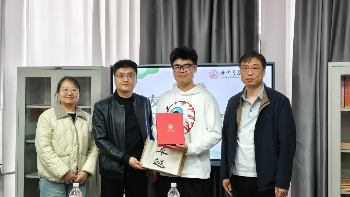 最后进入纪念品赠送环节。三位老师一同上台,将精心准备的纪念品递到校友刘健伟手中。这份纪念品,不仅凝聚着学校对刘健伟深深的感激与美好祝愿,更是对他在食品营养领域所取得的卓越成就的高度认可,同时也是对他心怀母校、慷慨回馈、无私传承知识的崇高敬意。随后,众人一同合影留念,镜头定格下了这温馨而珍贵的瞬间,将这份深情厚谊永远镌刻在了时光的长河中。