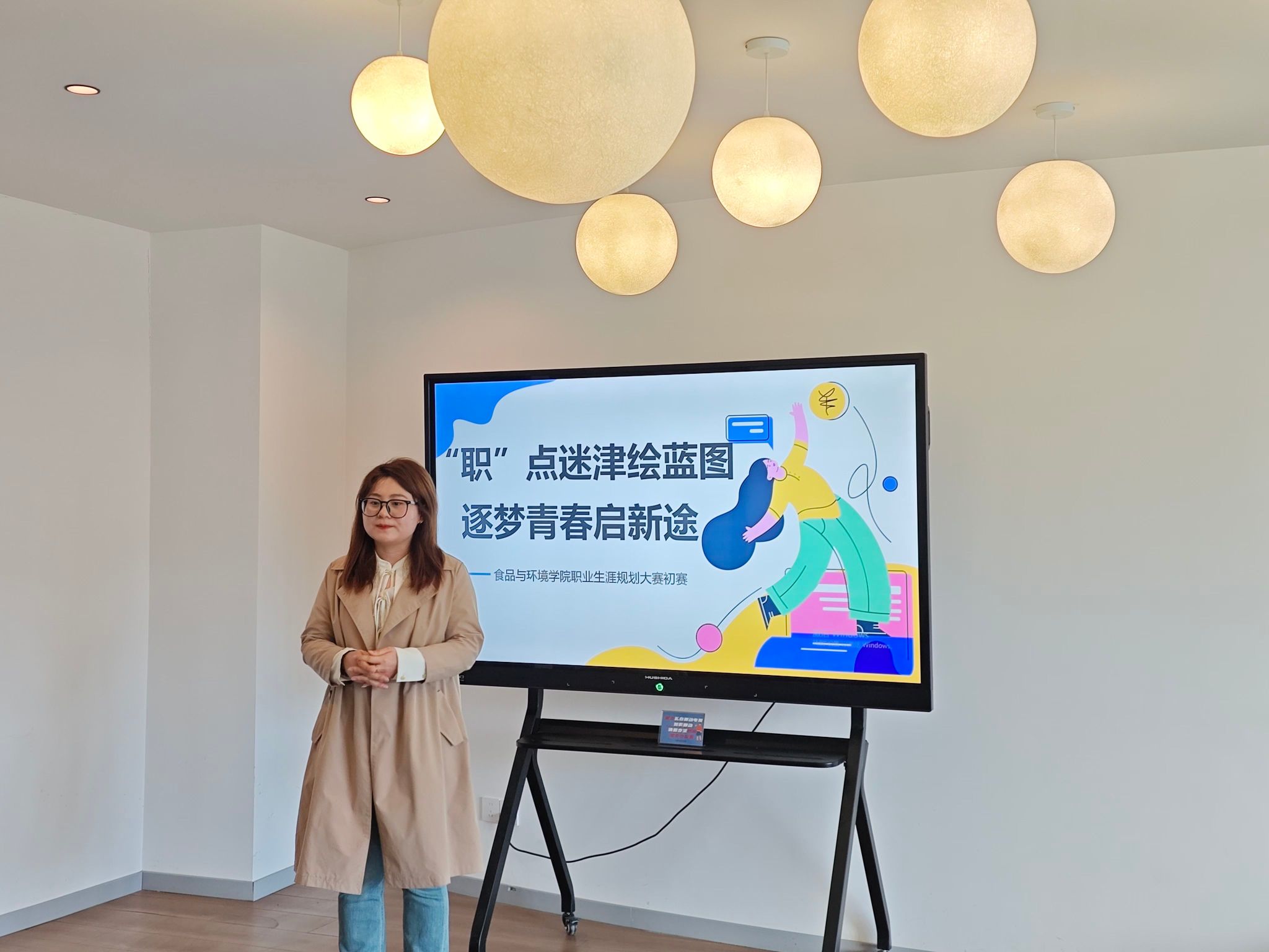 在科技日新月异、职场竞争白热化的时代浪潮下,大学生如何精准对接职场需求、全方位提升自身竞争力,已然成为亟待攻克的关键课题。4月9日,食品与环境学院为助力莘莘学子从容迈向未来职场,于毣谷N·次方·话题制造屋成功举办了以“完满启航,AI 赋能职场梦”为主题的第三届全国大学生职场模拟招聘大赛学院复赛。本次大赛自我介绍、评委提问和天选Offer三大环节进行职场的模拟,吸引了食品质量与安全、园林等专业共计50余名优秀学子踊跃参与,特邀杨欣老师、常佳老师担任评委。比赛现场,学子们凭借扎实的专业素养和昂扬的精神风貌,展开了一场激烈的角逐。