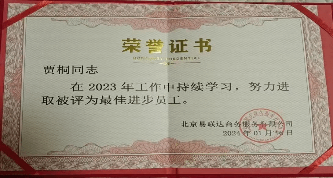有了明确的方向并进行一段时间的准备工作后,我有幸来到目前的公司进行新一阶段的学习与成长。第一天的工作是学习业务知识的PPT,比起之前接触的系统,我发现银行的系统更为庞大、涉及的业务知识也更加专业。我从最基础、最简单的工作入手,在同事耐心的讲解下业务能力、工作能力飞速提升。一起攻克了一个又一个难关。并在2023年获得了公司颁发的“最佳进步奖”。回过头来,发现与最初的自己已是天壤之别。经过几年马不停蹄的奋斗,如今的我已经成为银行软件风控技术负责人,回过头来,是学校的培养模式成就了我,将我从只掌握经济专业知识的单面手,通过双体的技术和职场持续赋能,最终引领我成长为掌握技术知识的经营管理人才!