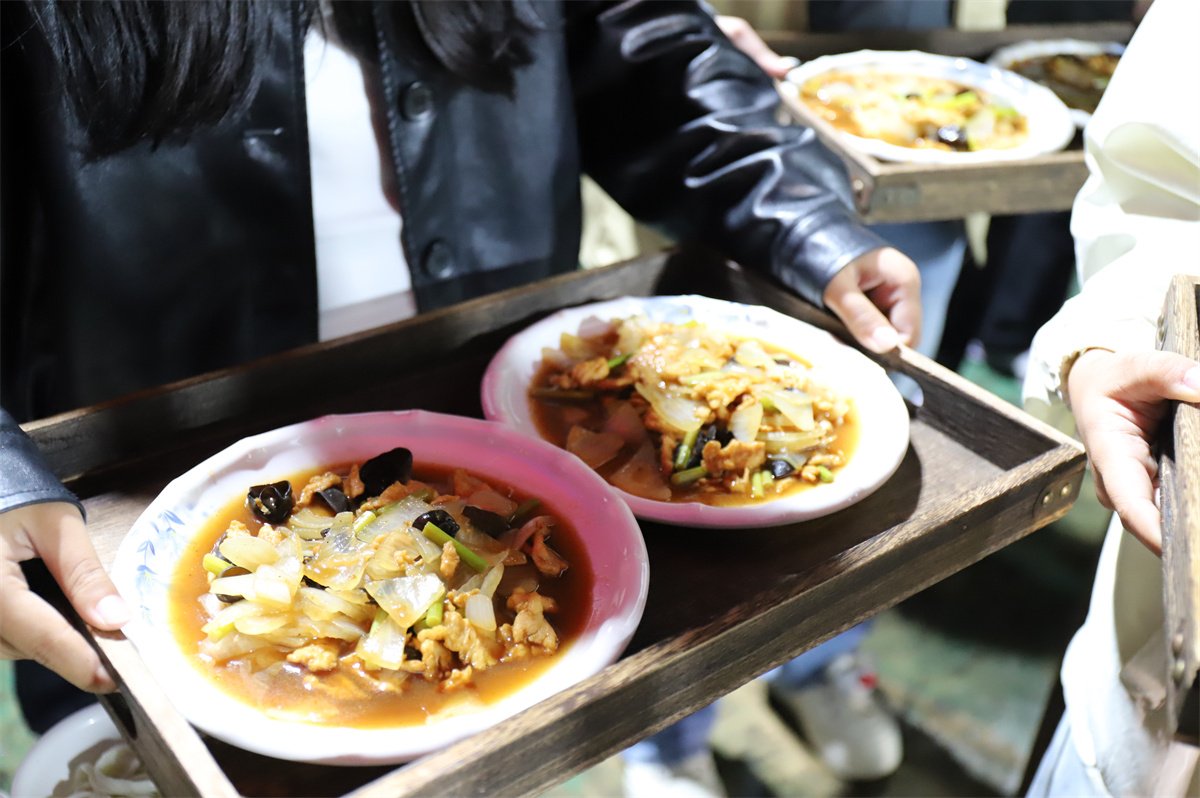 “香喷喷的打卤面出锅喽!”主持人一声充满烟火气的吆喝刚落,端着热气腾腾长寿面与山西特色菜肴的工作人员鱼贯而出,依次向寿星们呈上杏花书院精心为大家准备的特色美食。“这碗面,真的太香了!我第一次过这样的集体生日会,太幸福了。”“这桌菜,让我在异乡感受到了家的味道。好开心呀。”这碗裹着暖意的面,这桌满是晋味的菜,不仅让天南海北的同学们在校园里寻到了熟悉的“家味”,更让这份跨越千里的温暖,悄悄融进了每个人心里。