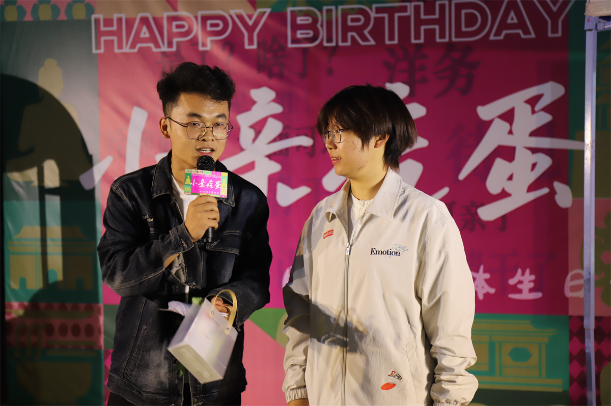 五颜六色,造型别致的花馍是山西非遗的代表作之一。摇曳的烛光里,杏花书院名誉院长高昂推着花馍蛋糕一出场,全场目光瞬间聚焦。随后,高老师为寿星们送上最真诚的生日祝福“来到信院,大家最不缺的就是快乐,希望大家在信院放肆地玩耍,祝寿星们生日快乐!”而“随手清理桌面垃圾”“感谢身边同学或老师”“给身边寿星一句祝福”等“责任力·隐藏任务挑战”,则悄然在传递温暖关怀与责任意识,“原来责任就是把每件小事都做好”,大家在践行责任时也收获了满满的幸福感。