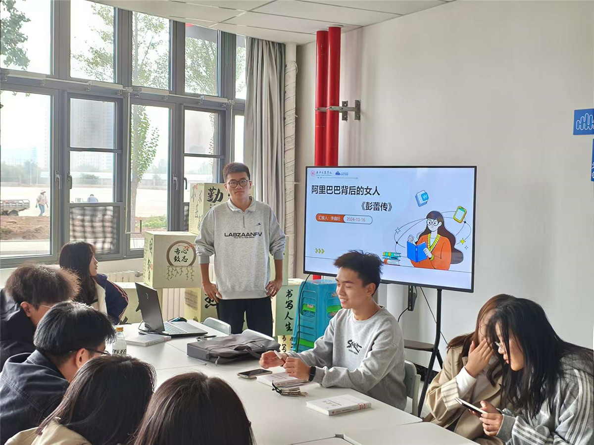 每一次的不如意都是一叶扁舟,但汇聚在一起时,便成了一座座充满智慧的风帆。经济与管理学院围绕《任正非传》与《零售心理战》等大咖传记,分析任正非中年时期的奋斗历程,深感成功的铺垫离不开努力的坚持;上河书院以《张朝阳:重新出发》为核心议题,鼓励同学们要在挫折中坚韧不拔,在逆境中敏锐捕捉机遇;远景学院开展《腾讯传》的集体阅读活动,通过朗读好句、心得交流等形式,加深了艰苦奋斗在成功中强大的占比因素;食品与环境学院邀请王子钰、杨欣、刘悦三位老师为同学们带来多场精彩的的大咖阅读分享会,深入大咖成功背后的秘密,无边书院同步开展“向商书屋”和“光影职场行”,结合乔布斯、董明珠两位大咖发家史,再次阐述了独特的商业策略对于奋斗目标的决定作用。