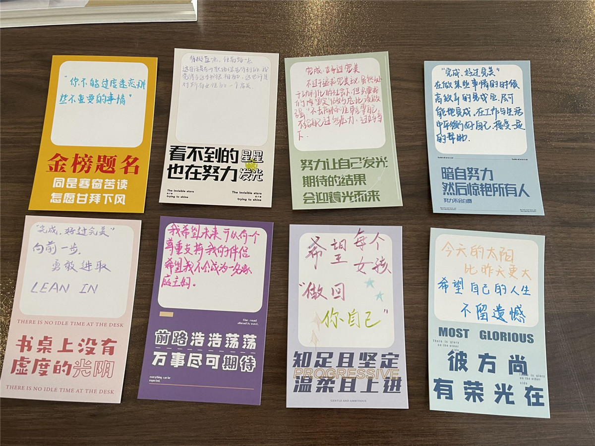 “谢丽尔·桑德伯格的故事告诉我们不能被成见和规矩束缚,要勇于打破传统认知,主动争取机会,在职场和生活中都大胆地向前一步,要激励自己在未来的道路上,勇敢追求心中的目标,不被性别所定义。”