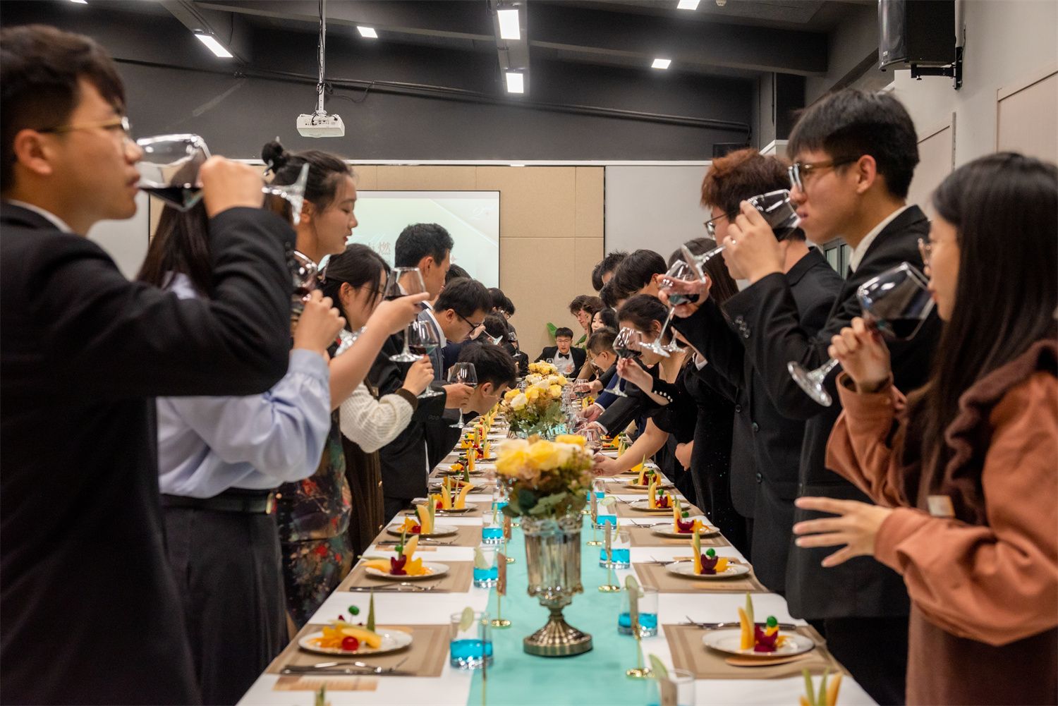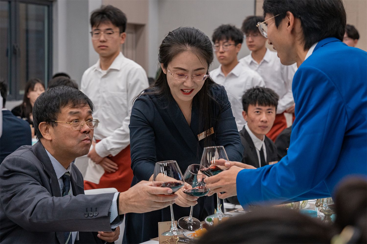 在繁华热闹的宴会厅里,灯火辉煌,觥筹交错。酒香从碰撞的玻璃杯里溢出,飘散在师生间。美食、美酒、好友、欢笑共同创造出难忘的回忆,心与心的交融被珍藏在照片中。