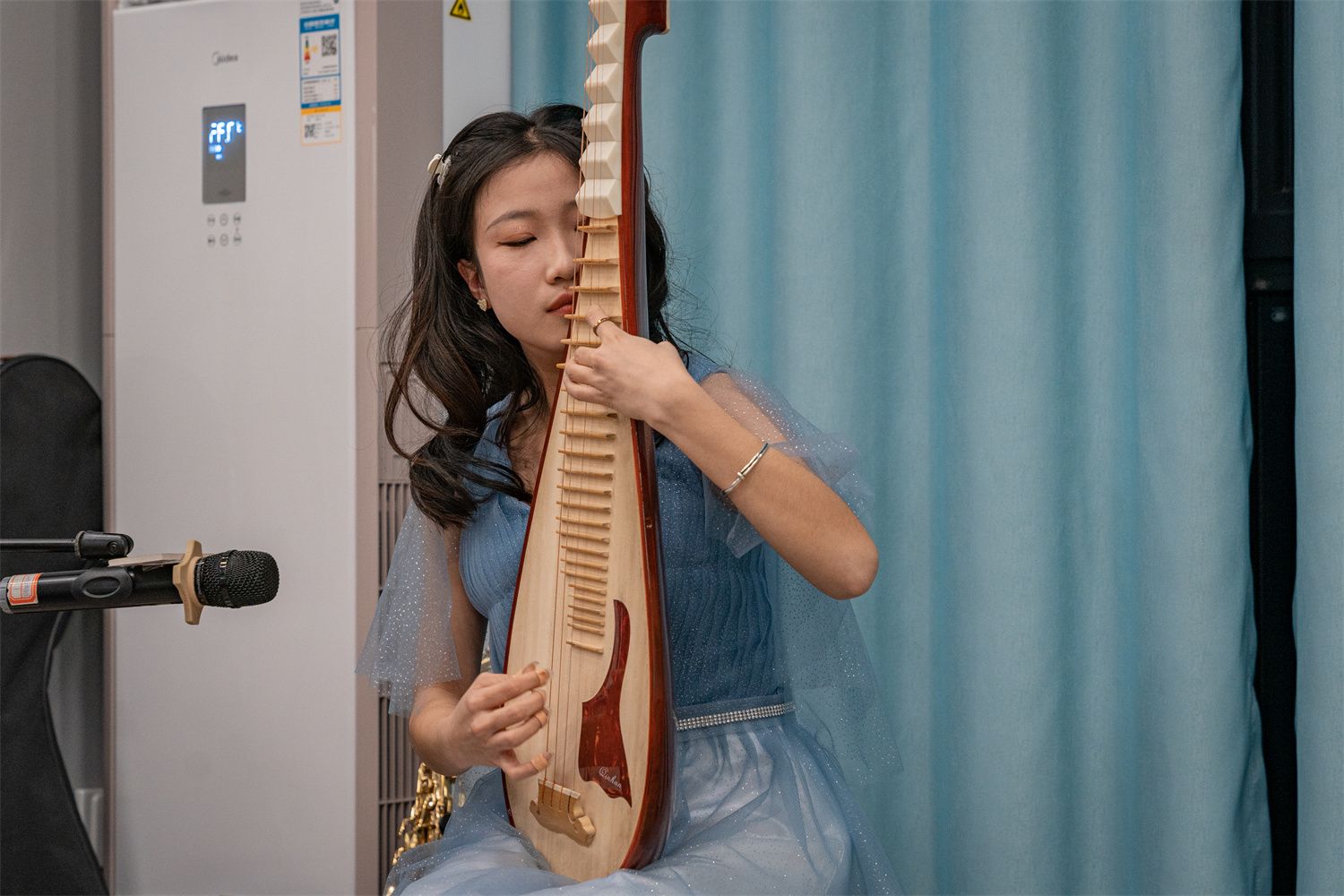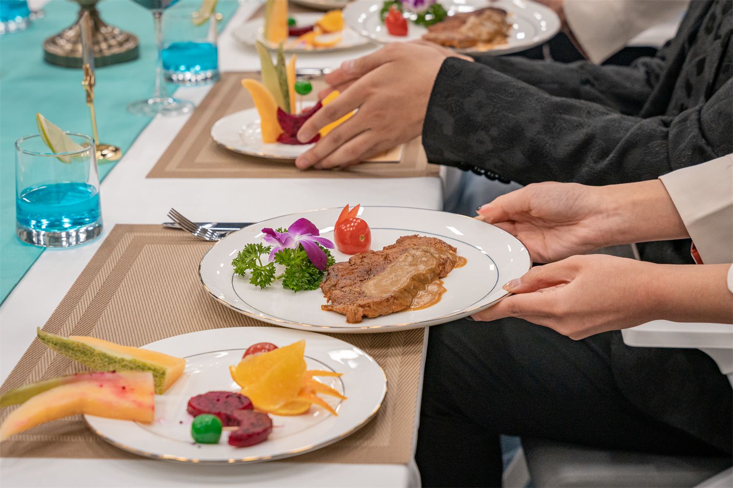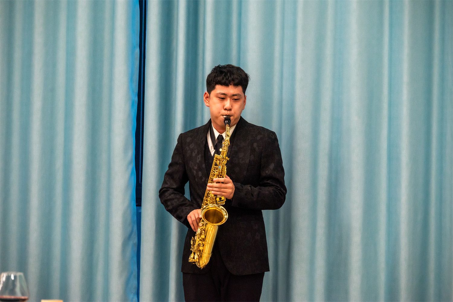 美酒是回味的甘甜,美食是舌尖的盛宴,音乐是心灵的共鸣。激情、奔放、悠扬,举杯、共话、同享,现场师生沉浸其中,享受着此刻的温馨与惬意。在大学生艺术团民乐团梁裕同学的节目《青花瓷》传递含蓄、优美、生动,流淌于心间,菲力牛排和“海盐椰椰慕斯蛋糕”的接连上桌,浓浓的奶香气,让宴会场中暖意愈来愈浓。