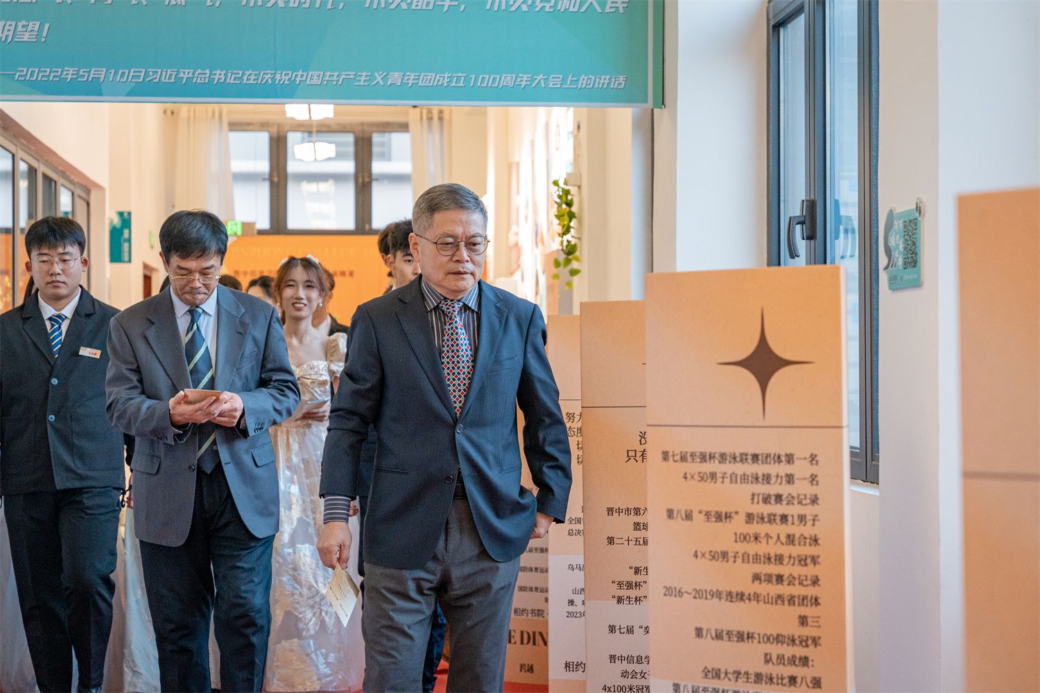 校长姬宇、常务副校长胡继连、副校长刘正国、人力资源处处长张晓洁、竞技体育中心主任王海文、书院部部长李鹏鹏、太行书院综合办主任李静出席本次晚宴,同时邀请我校亚运会卡巴迪执裁代表刘一博老师、竞技体育中心孙冰和王威雯教练,与来自校队运动员、体育类社团、体育类项目工坊代表相聚一起,分享竞技体育荣誉背后的精彩故事和榜样精神。晚宴由营地教育中心李俊博老师主持。