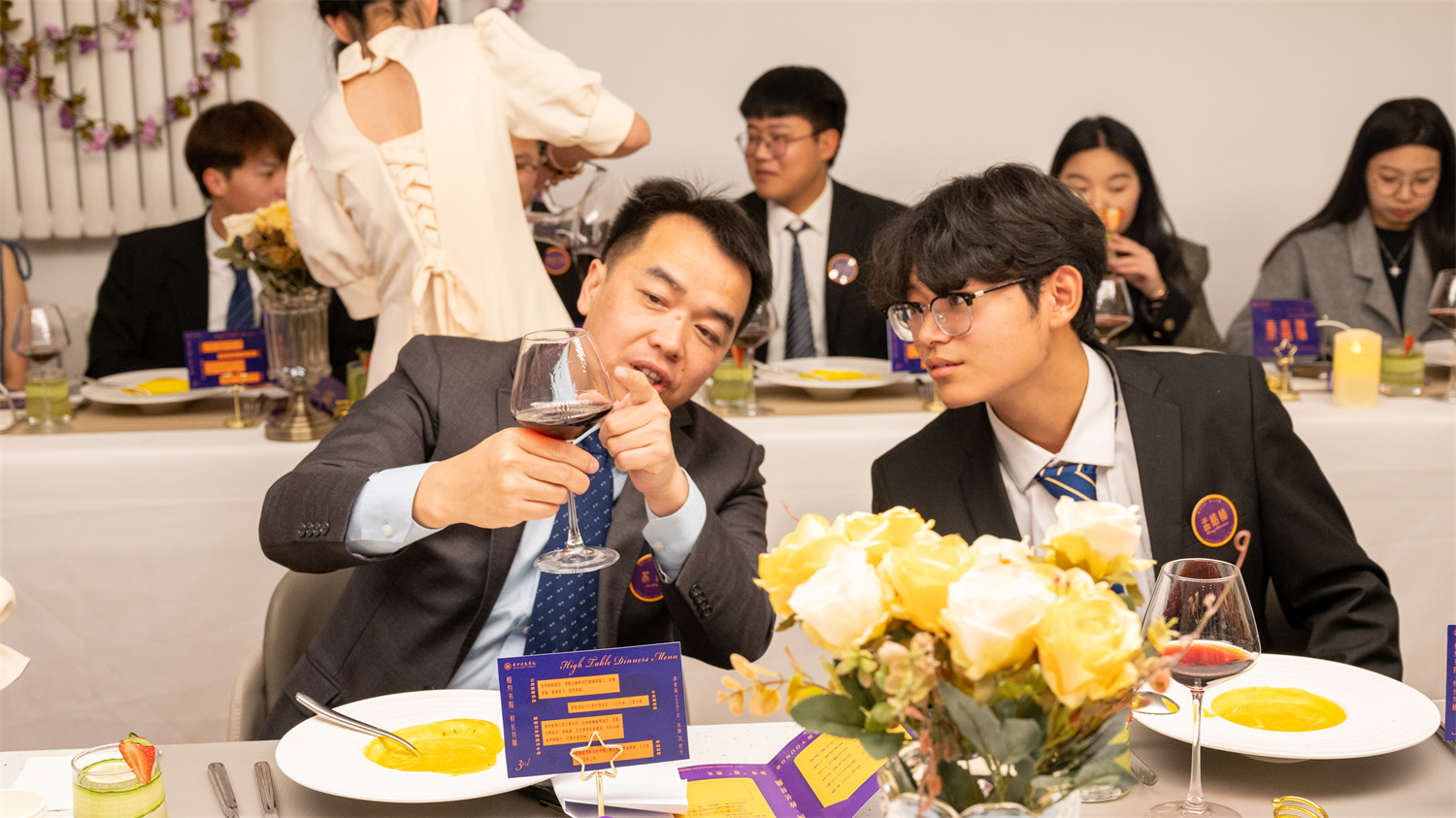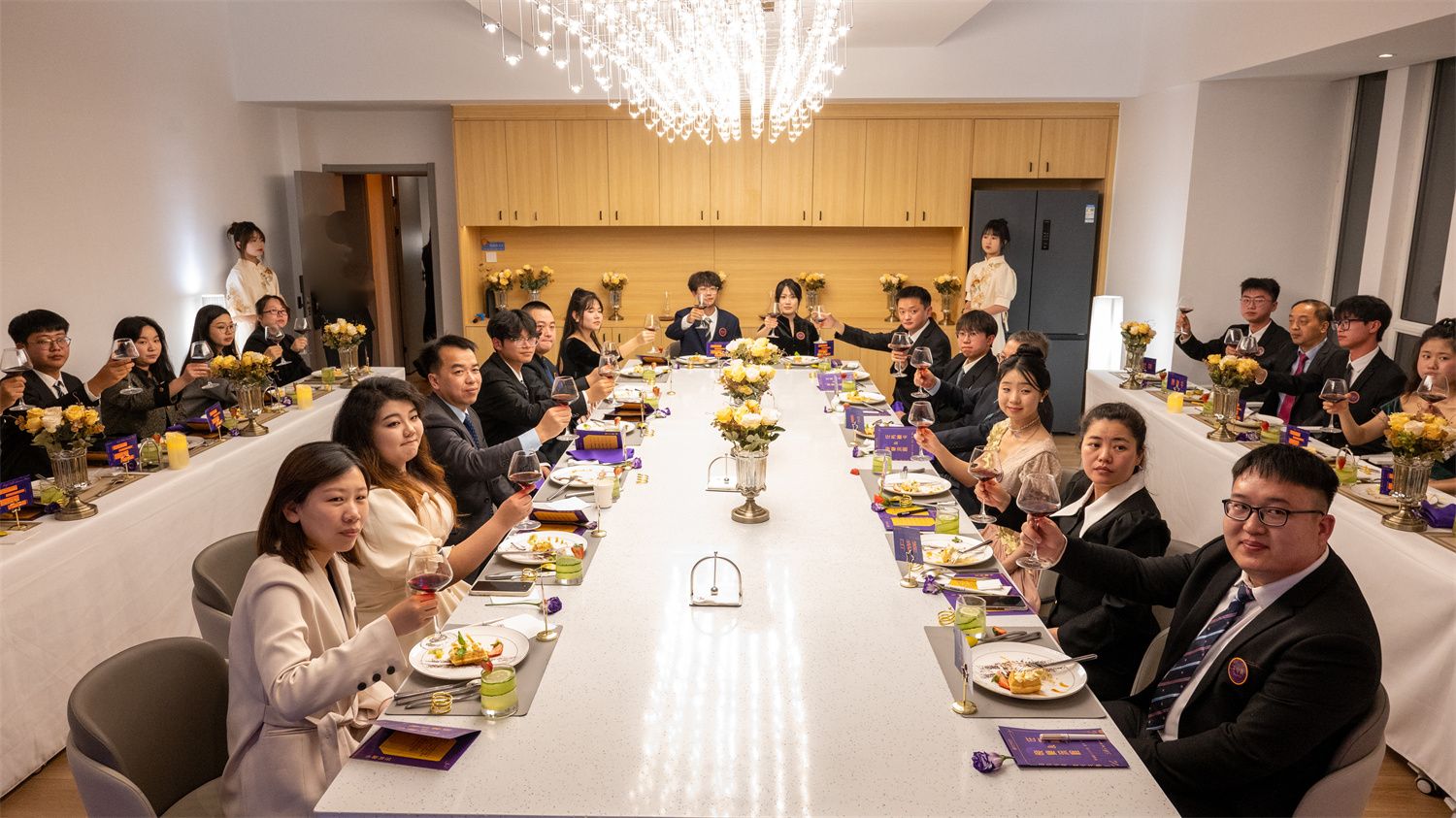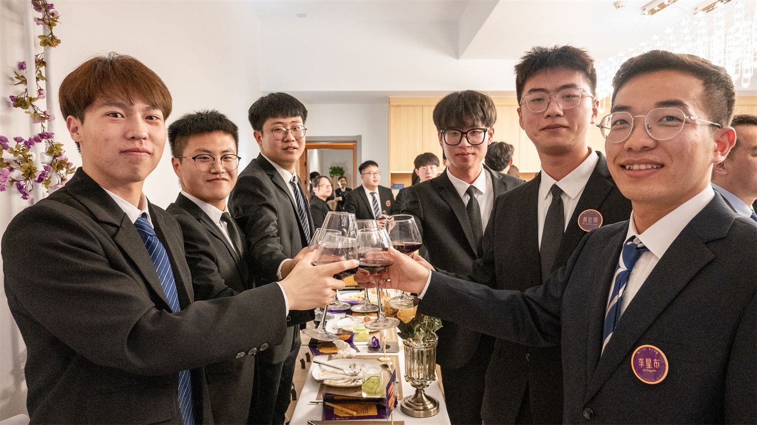 本次晚宴是我校首次于新落成的毣谷书院高桌晚宴厅举办校长共膳,邀请专业的厨师团队于共享厨房现场烹制餐品,充分发挥了我校场域优势的同时,为我校师生打造了一场充满浪漫、温情和优雅的盛宴。在前期准备过程中,也邀请专业的礼仪培训师为学生开展了专业的用餐、服务礼仪培训,致力于提升我校师生跨文化沟通交流能力,在盛宴中收获友谊、自信、从容,在交流中收获启发、感悟、成长。