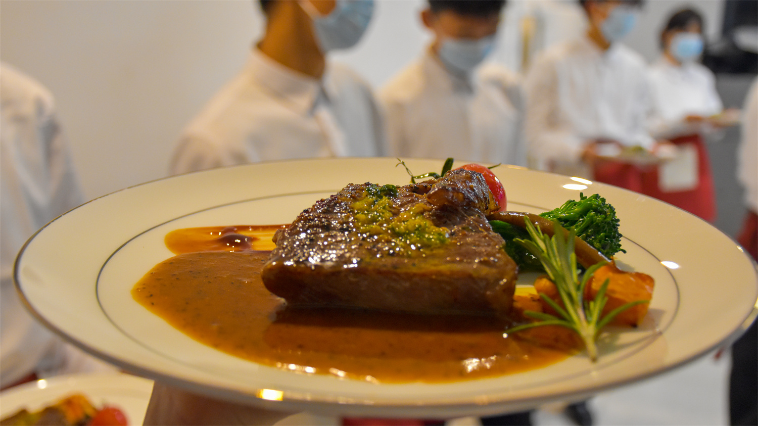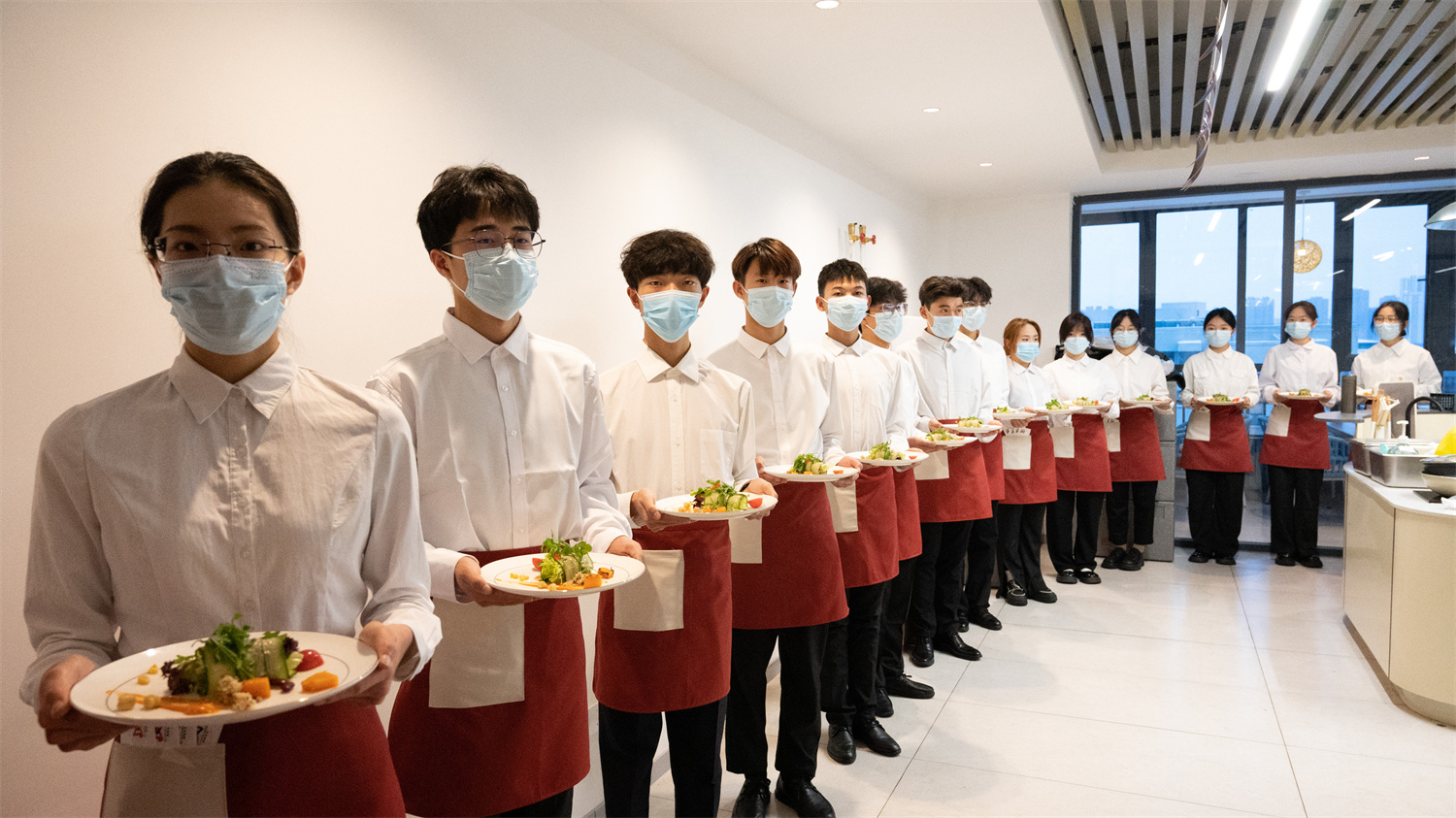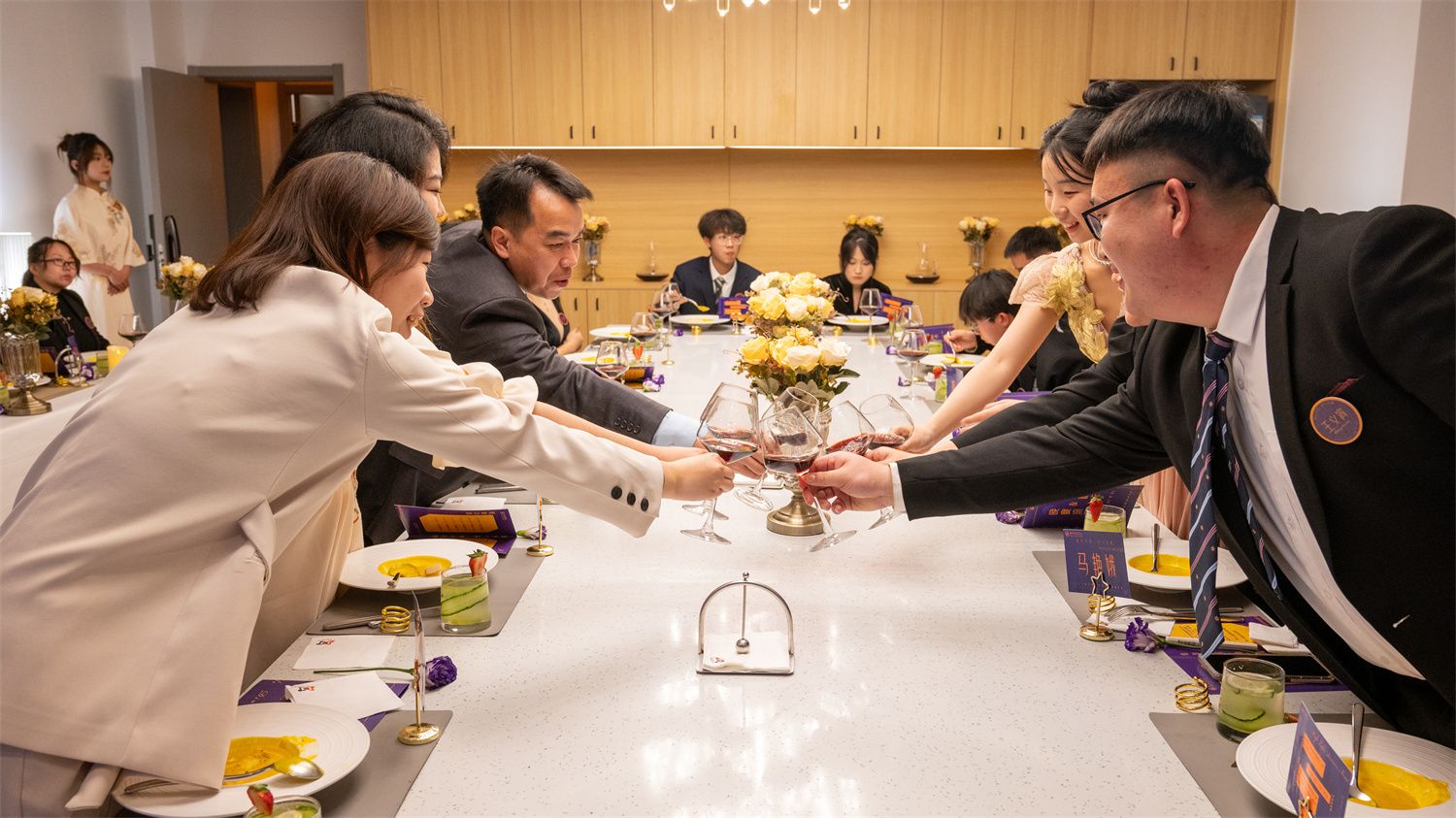 本次晚宴是我校首次于新落成的毣谷书院高桌晚宴厅举办校长共膳,邀请专业的厨师团队于共享厨房现场烹制餐品,充分发挥了我校场域优势的同时,为我校师生打造了一场充满浪漫、温情和优雅的盛宴。在前期准备过程中,也邀请专业的礼仪培训师为学生开展了专业的用餐、服务礼仪培训,致力于提升我校师生跨文化沟通交流能力,在盛宴中收获友谊、自信、从容,在交流中收获启发、感悟、成长。
